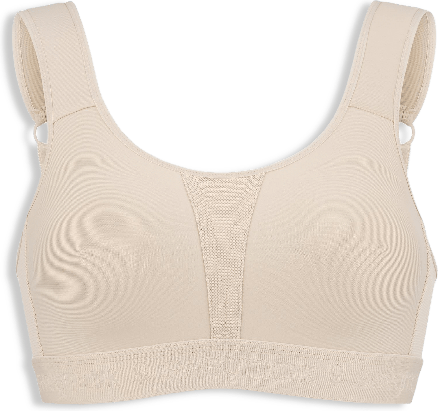 Möt 'Kimberly Iconic' från Swegmark, en sport-BH som kombinerar hög funktion med skön komfort, perfekt för medelintensiv träning. Formpressade kupor ger en naturlig silhuett, medan det dubbla materialet i både kupor och ryggstycke erbjuder extra stöd. Breda, justerbara och vadderade axelband avlastar dina axlar, som dessutom går att knäppa ihop till brottarrygg. En resår i nederkant gör att denna sport-BH sitter stadigt och skönt på plats under din aktivitet. Den vadderade hysk & hakknäppningen är skonsam mot huden. Denna sport-BH har nickelfria spännen och en design som passar utmärkt även efter bröstoperation. 'Kimberly Iconic' den optimala följeslagaren för alla dina aktiva stunder.