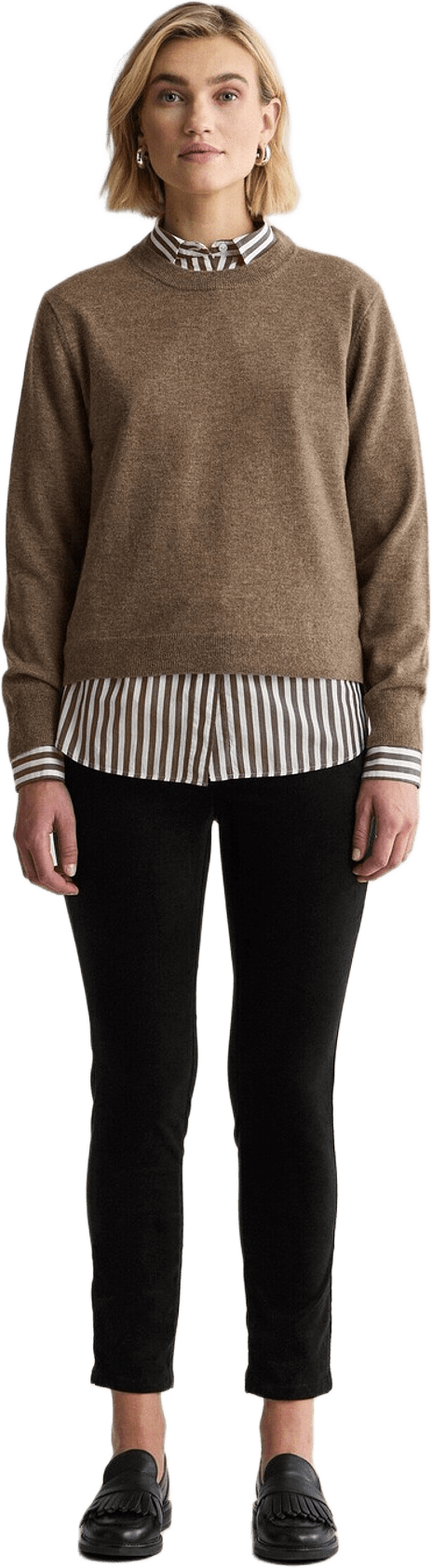 Tidlös rundhalsad tröja i mjuk lammull. Passformen är avslappnad och tröjan har nedhasad axel och slitsar i sidorna.