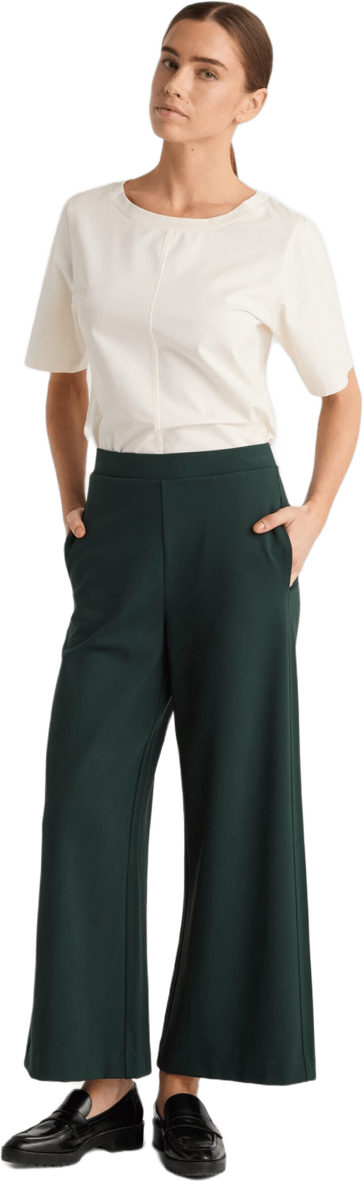 En vid slip-on byxa med croppade ben och fickor i sidsömmen. Residus storsäljare! Tung jerseykvalitet.