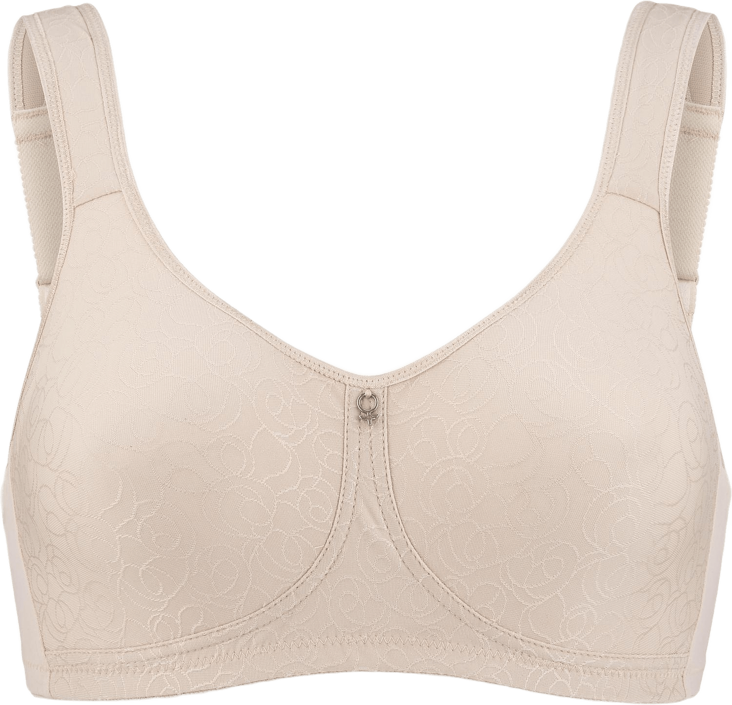 Upptäck Lovely Agnes Mjuk-BH i färgen vit: din nya följeslagare för oslagbar komfort och en naturlig siluett. Denna BH kombinerar formpressade kupor med en unik design som inkluderar fickor för bröstprotes, vilket gör den idealisk för alla som söker extra anpassningsbarhet och stöd efter en bröstoperation. Lovely Agnes är tillverkad med dubbla material i kuporna för en perfekt form, mjuka kanter, och en resår med mjuk insida. Dess vadderade, reglerbara axelband avlastar axlarna och ger bästa möjliga passform. Dessutom är alla metallkomponenter nickelfria och hake & hyska är vadderad vilket gör den extra mjuk mot huden. Med sitt fokus på både funktion och komfort är Lovely Agnes Mjuk-BH det självklara valet för den som värderar hög kvalitet och en BH som är skön att bära hela dagen. Vadderad hysk & hakknäppning som är mjuk mot huden och som är olika i antal på höjden beroende på storlek. 2 st i stl 75-85 ABCD. 3st i stl 90-100 ABCD, 75-95E.