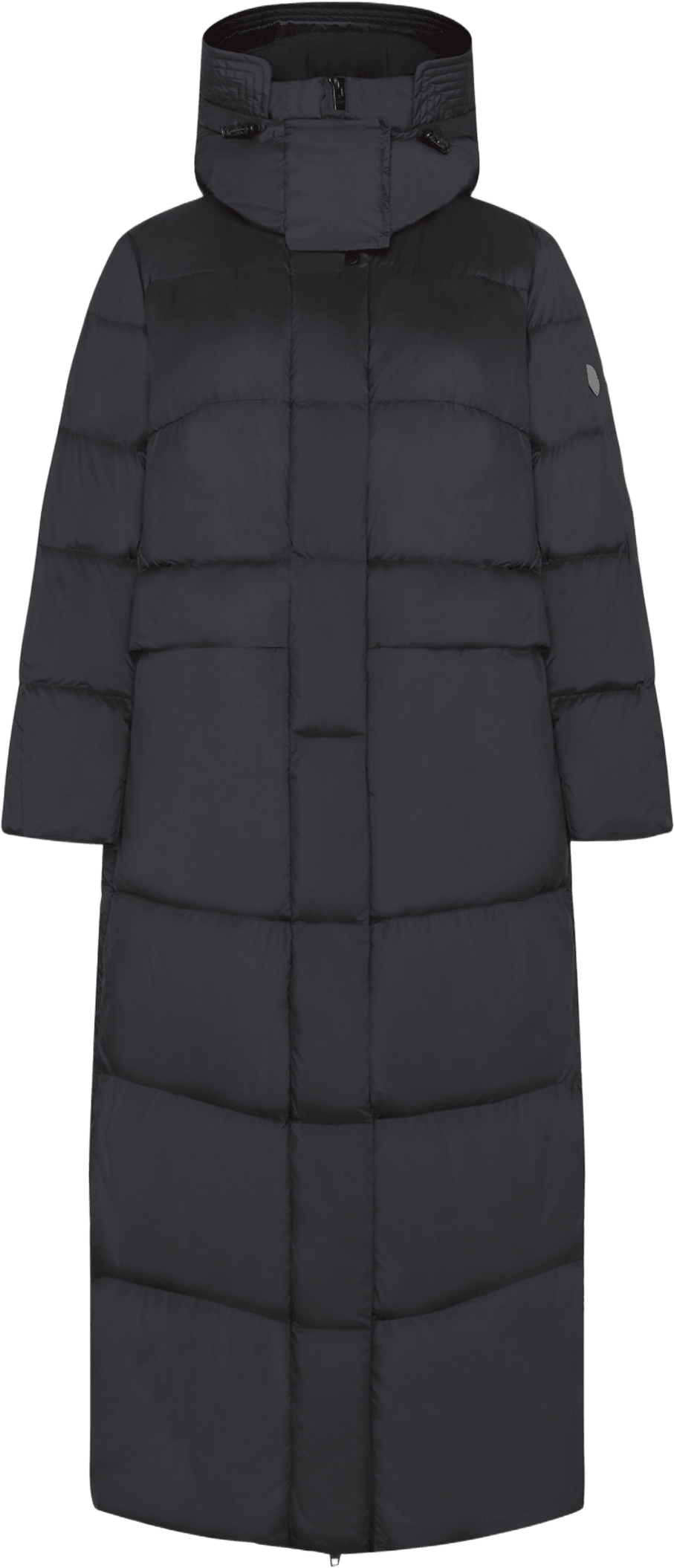 Denna eleganta långa dunkappa är det perfekta plagget för vinterns kallaste dagar. Den stilrena designen kombinerar funktionalitet med sofistikerad estetik. Jackan är utrustad med en hög krage och justerbar huva som skyddar mot kyla och vind, samt ett dolt blixtlås med klaff framtill för extra isolering. Behandlad med vattenavvisande BIONIC-FINISH®ECO.