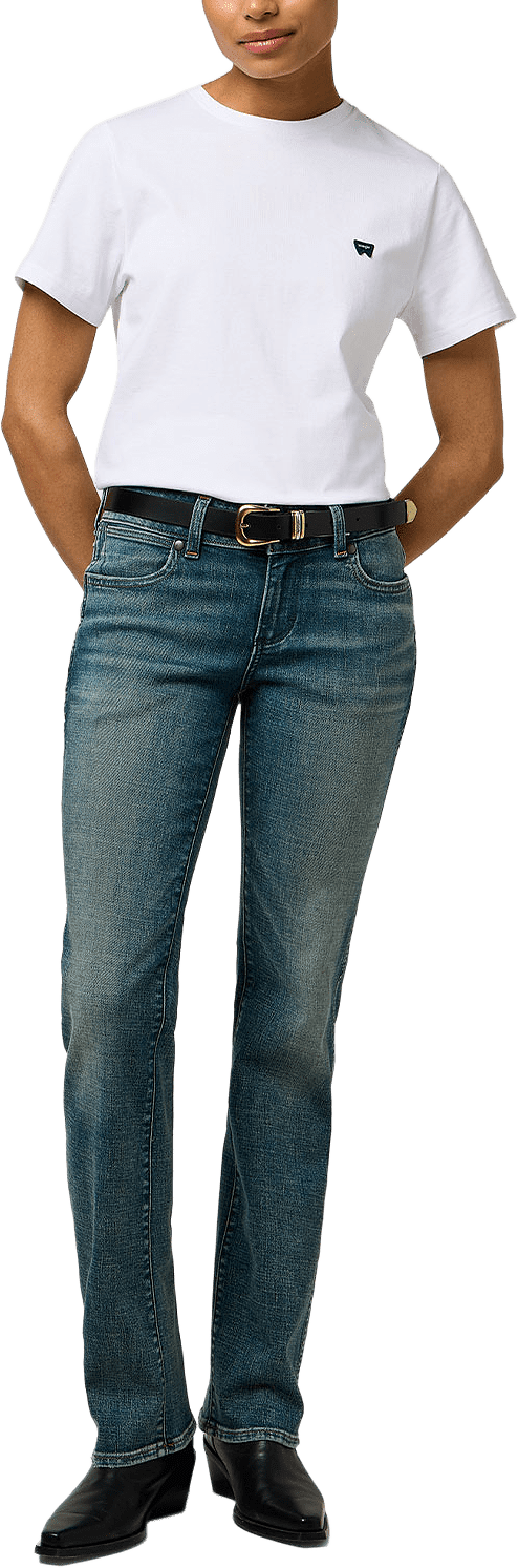 • Designed with a low-rise waist, fitted seat and a bootcut leg opening.