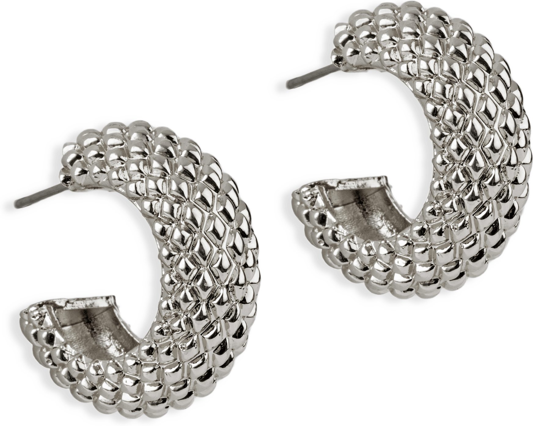 Ett rodiumpläterat örhänge som har en fin struktur som gör att det blänker fint i ljuset. Hoopen är 22 mm i diameter och 9 mm bred. Stift i kirurgiskt stål. Nickelsäkert.