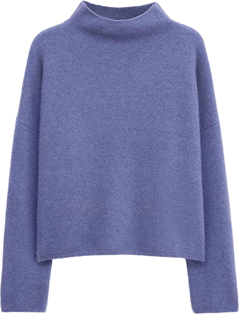 Den är en dröm. Mjuk. Luftig och varm på samma gång. Så fin dimblå färg. Användbar i många sammanhang. Köpte en svart för några år sen. Används ofta och håller sig fin. Det här blir en ny sk stöttepelare i garderoben.