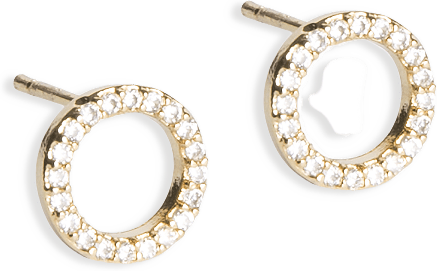 Runt guldpläterat örhänge med glaskristaller. Stift i kirurgiskt stål. Cirkeln är 9 mm i diameter. Nickelsäkert.