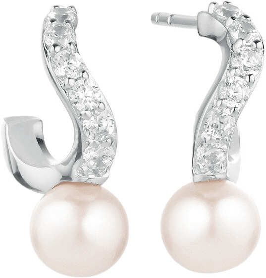 Örhängen i 18 karat guldpläterad 925 Sterling Silver med polerad yta och handplacerade facettslipade Vita Zirkoner och sötvattenspärlor.