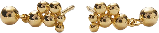 Elegant earrings with pendant in silver or gold-plated silver. Pebble Earrings are a pair of elegant studs inspired by the meeting of light and the shimmering pebbles found on Danish beaches. Each earring features seven small “stones” in precious metal, arranged in an organic pattern with a polished, soft surface. The bottom "stone" hangs freely and moves gently, catching the light and adding a sense of movement to the design.