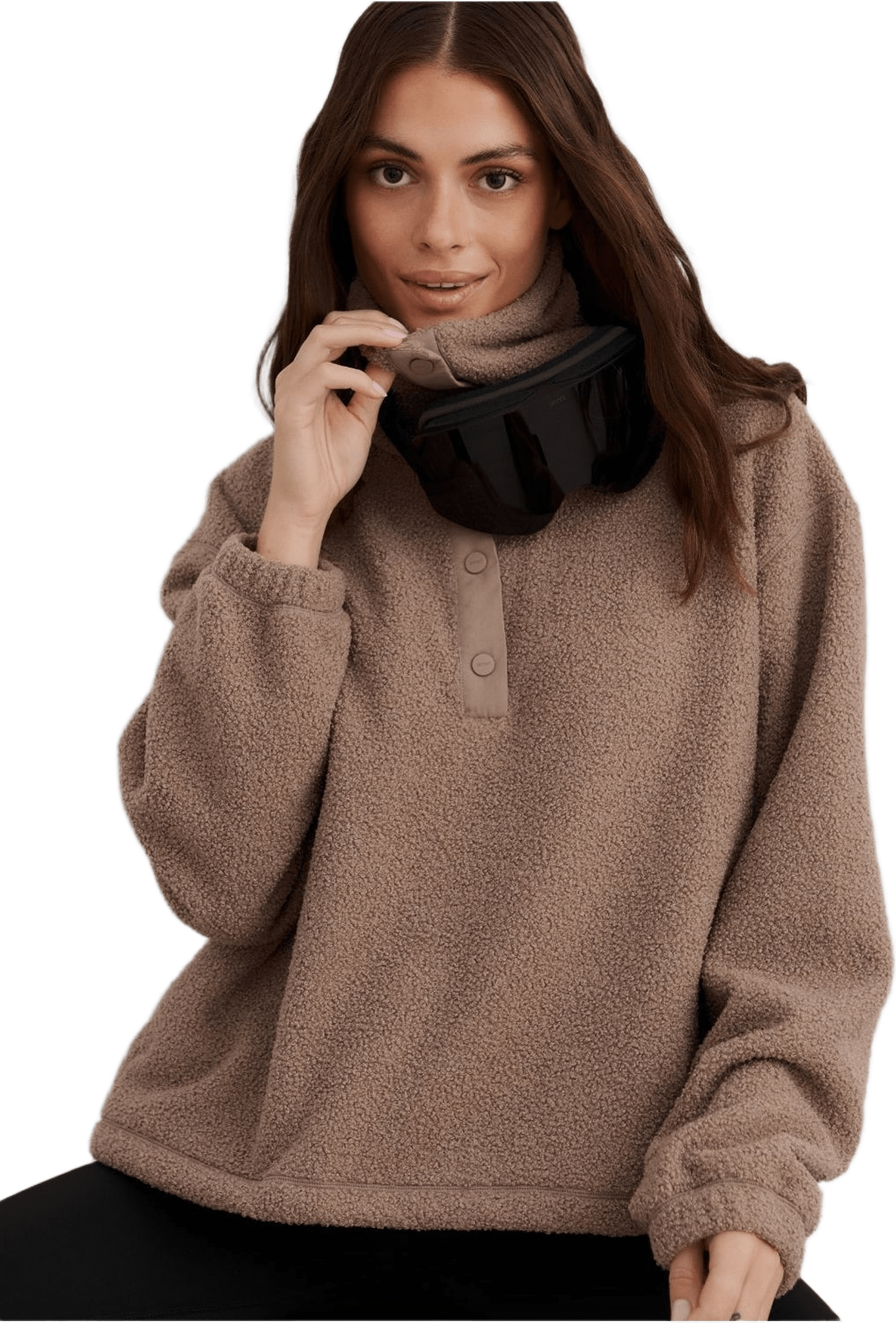 Crafted from premium fleece with a cozy half-collar and tonal button closure, the long-sleeve pile sweater offers a relaxed fit. Designed to insulate while remaining breathable, this fleece sweater features an adjustable drawcord at waist to customize the fit. The Polar Fleece Long Sleeve is bonded with fake fur on the inside and an aim’n logo at lower sleeve.