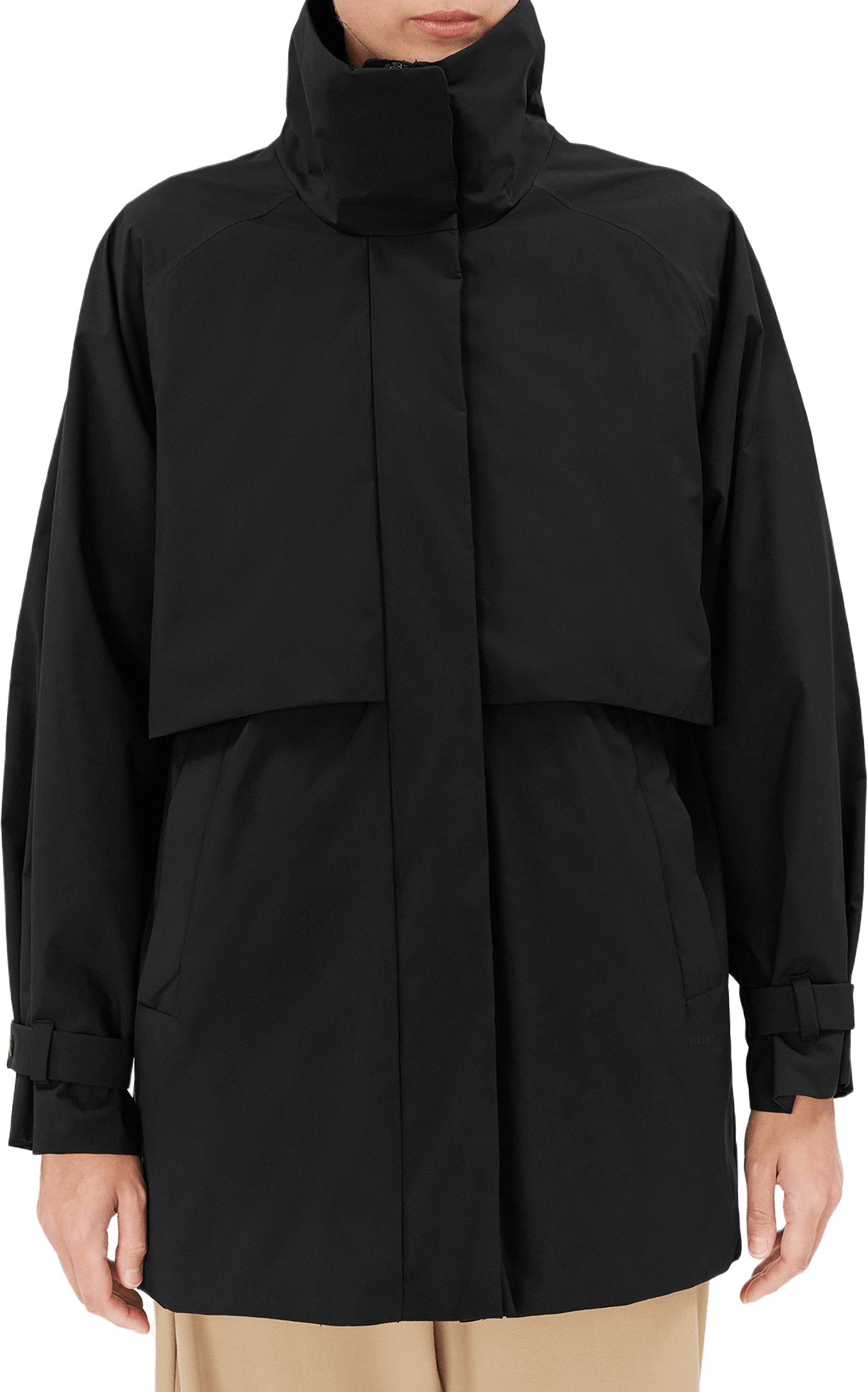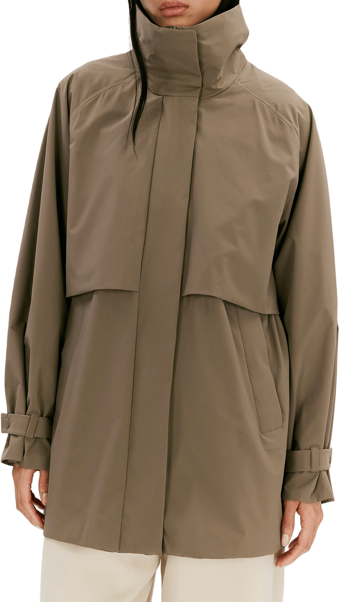 Polly är en kort jacka med trenchinspirerad design, tillverkad i Matte Motion 3K. Materialet är mjukt och lyxigt med en matt finish som både skapar en dressad look och adderar en touch av funktion. Detaljer inkluderar trench-ok fram och bak, justerbara ärmslut och midja, tejpade vitala sömmar och raglanärmar. Bär Polly för en mångsidig look som förenar funktion och sofistikerad stil.