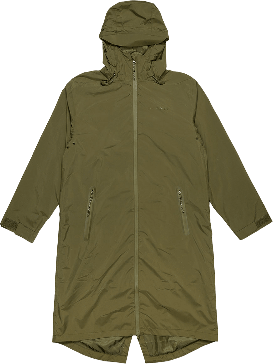 Denna funktionella regnjacka är designad för att hålla dig torr och bekväm även under de regnigaste dagarna. Den har en justerbar huva med stormskena som kan anpassas både i sidorna och baktill för bästa möjliga skydd. Jackan stängs med en vattentät tvåvägsdragkedja, vilket gör den smidig även vid cykling, och en hakskydd ger extra komfort. De två framfickorna med vattentäta dragkedjor håller dina saker torra, medan kardborre vid ärmsluten och en elastisk dragsko i midjan ger en mer figurnära passform. Invändigt finns meshfoder och ventilationsöppningar i ryggen som ökar andningsförmågan. Sportiga snordetaljer vid dragkedjorna, en praktisk hängögla samt elastiska axelremmar som gör det möjligt att bära jackan öppen fulländar designen. Med tejpade sömmar och en vattenpelare på 10 000 mm står den emot även kraftigt regn. Modellen är XX cm lång och bär storlek X.