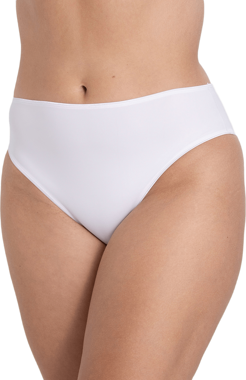 Trosa i brazilian-modell i minimalistisk och slät design. Tillverkad i lent och skönt material av återvunnen textilfiber. Modellen har hög midja och hög benskärning. Perfekt för dig som föredrar mindre täckande trosmodeller. Trosan håller sig på plats och tappar inte formen eller glider ner. Ger en trygg känsla hela dagen. Materialet är tjockare och stabilare än i vår vanliga Basic serie med microkänsla. Flatlocksömmar i midja och benöppningar gör att trosan inte skär in och är väldigt diskret under kläder. Sidsöm 6,5 cm i storlek 38/40.  Bomullsfodrad gren.