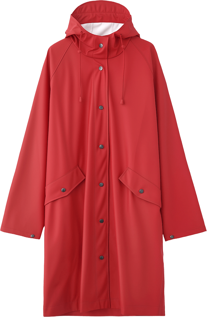 den är lång och härlig. Toppenplagg👌Huvan skyddar fint!2025-10-12