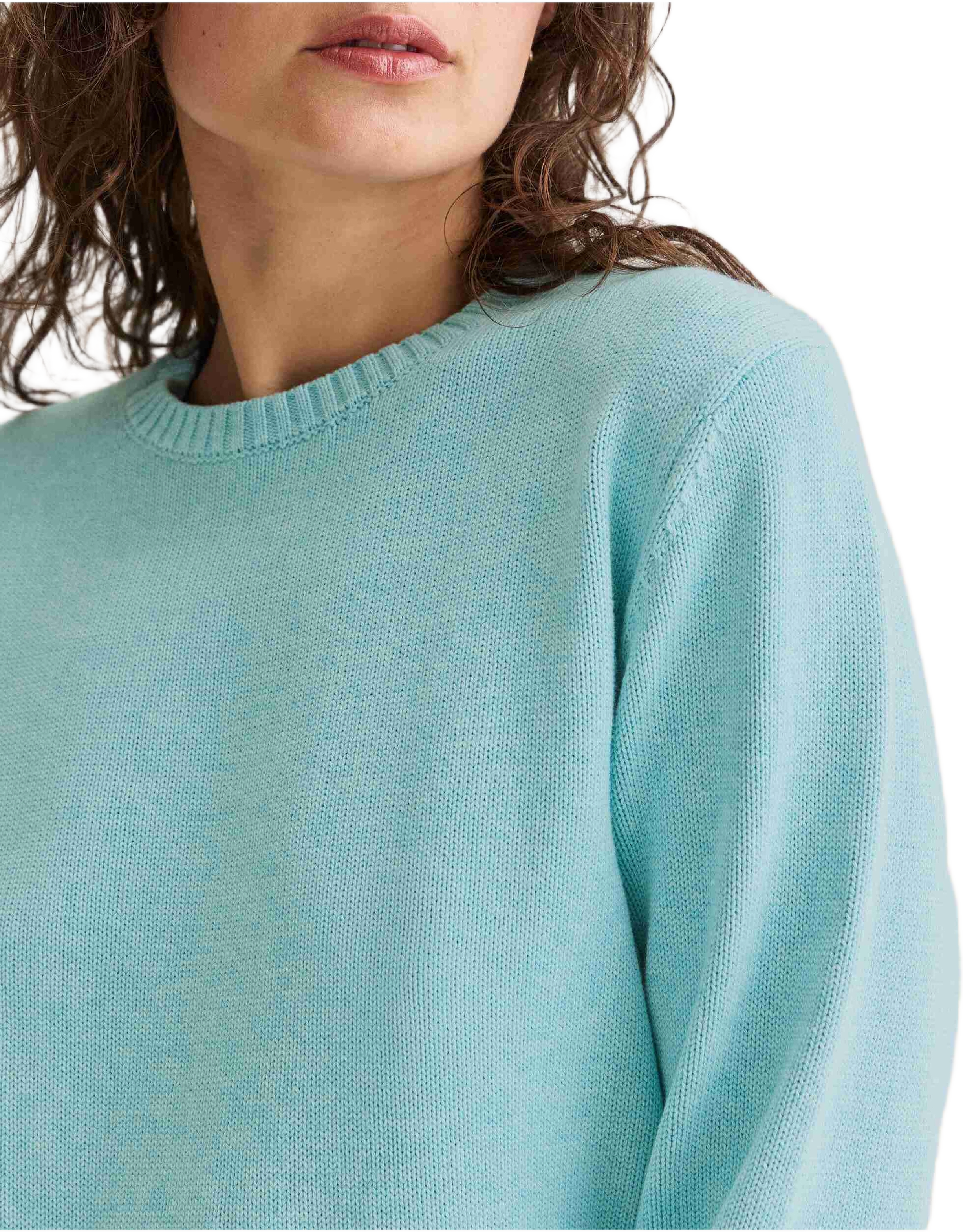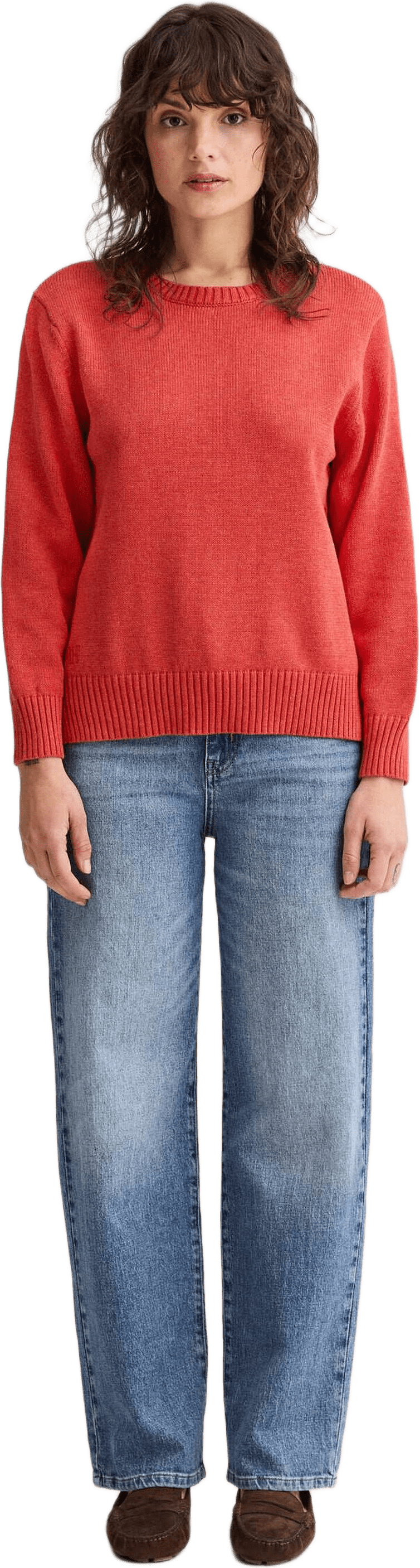 Rundhalsad tröja med en mjuk känsla. Modellen har ribbade avslut och ett tonalt logobroderi nedtill. En liten slits i sidsömmen ger ett fint fall och längs sidan löper en diskret kabelstickad detalj som adderar en sofistikerad touch.