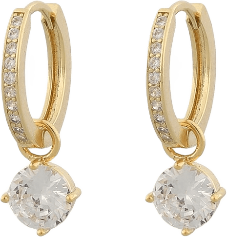 Underbara hoop örhängen med hänge. Örhängen som lyfter vilket outfit som helst. Ring 14mm, sten 6mm. Material: Guldpläterad mässing med cubic zirconia stenar. Nickel testad.
