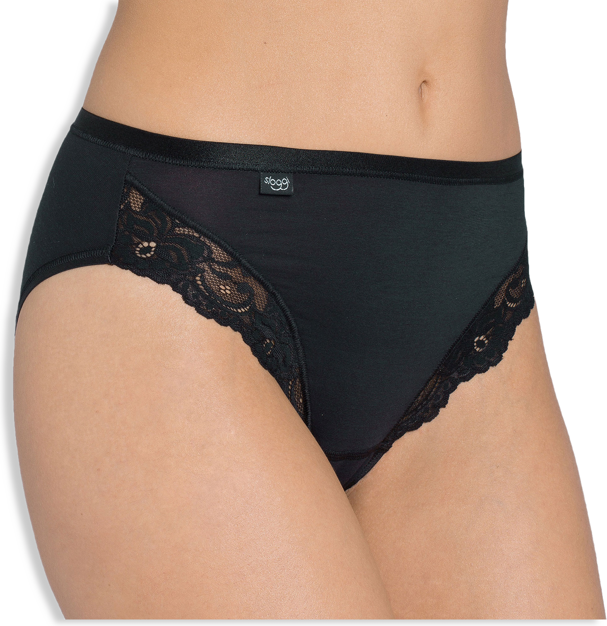 Synd att det inte finns större storlekar än upp till 44. Spetsen är gjord av ett material som skaver, den känns inte mjuk. Vore bättre med bomullsspets som det var för ett antal år sedan.