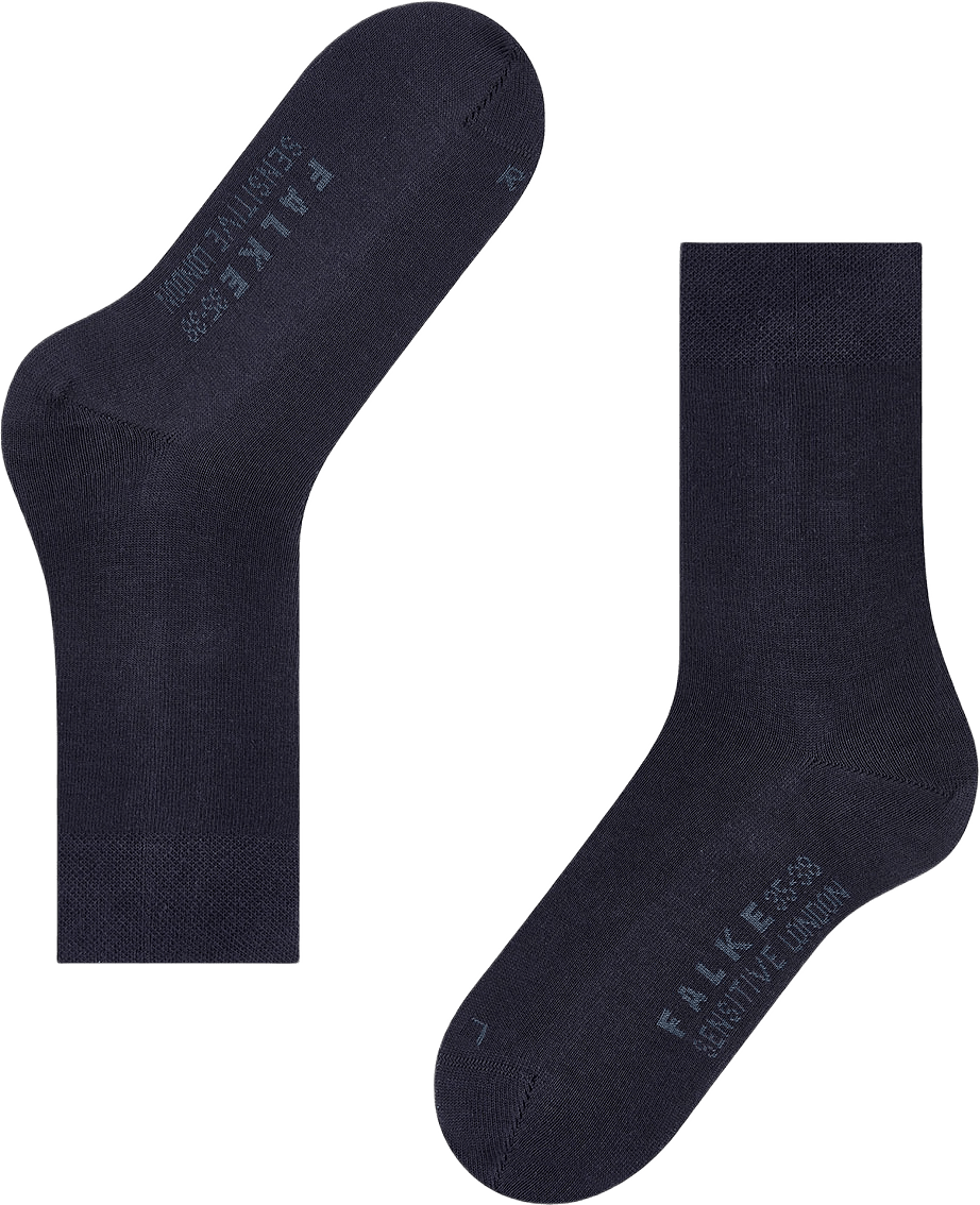 FALKE Sensitive London are pleasantly soft on the skin thanks to the high cotton content. Not only are they particularly skin-flattering, but also sustainable: they consist almost entirely of FALKE - WE CARE - COTTON, a resource-saving and socially responsible cotton, supplemented by a small proportion of recycled functional yarns for more elasticity and a high level of material durability. The particularly soft sensitive cuffs, in combination with very flat seams and the anatomical FALKE fit, ensure a perfect fit without constriction. Thus, the FALKE Sensitive London are also suitable for particularly pressure-sensitive legs and diabetics.