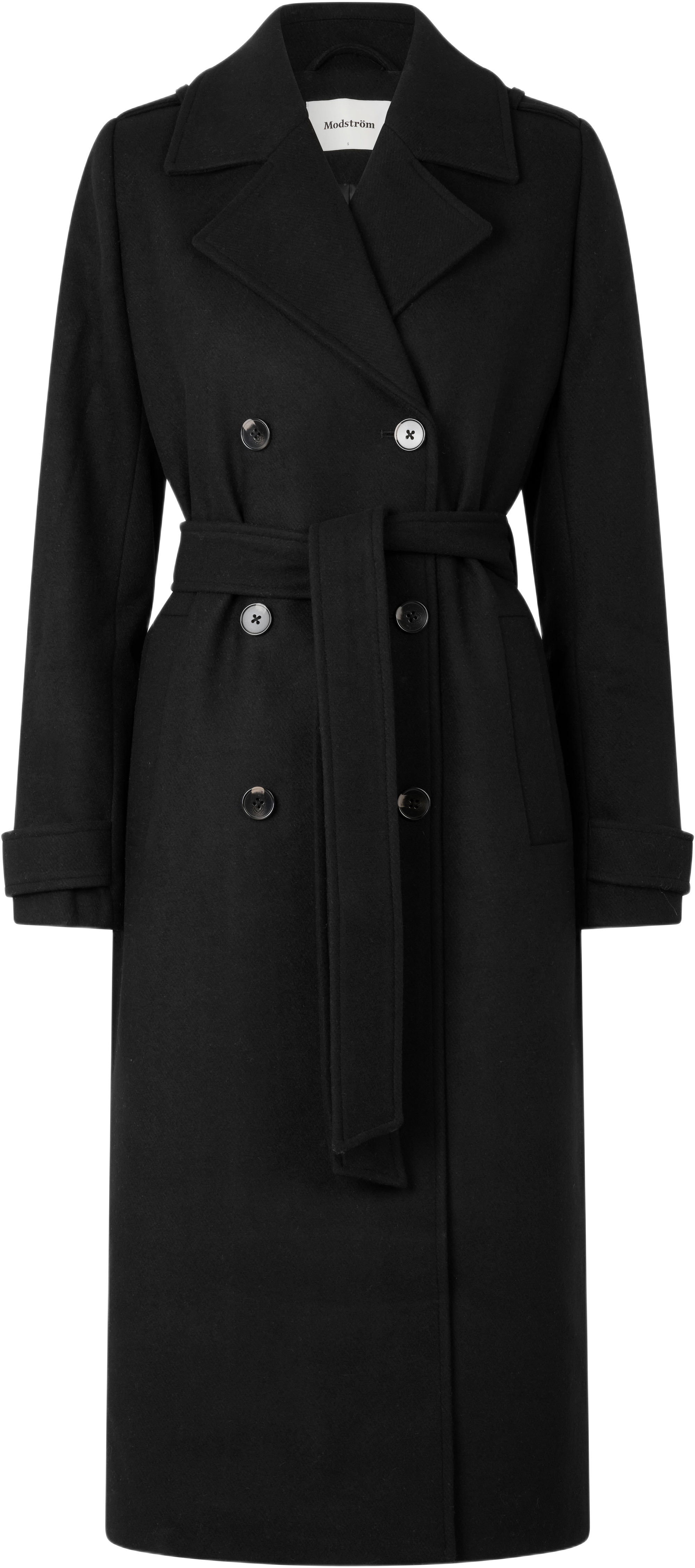 Klassisk dubbelknäppt yllekappa med krage och markerade slag. ShayMD-kappan är designad med ett brett midjeband som framhäver midjan, dekorativa axelband och vida manschetter för en sofistikerad touch. Kappaen är helfodrad för extra komfort och har en enskild slits bak för en elegant finish.