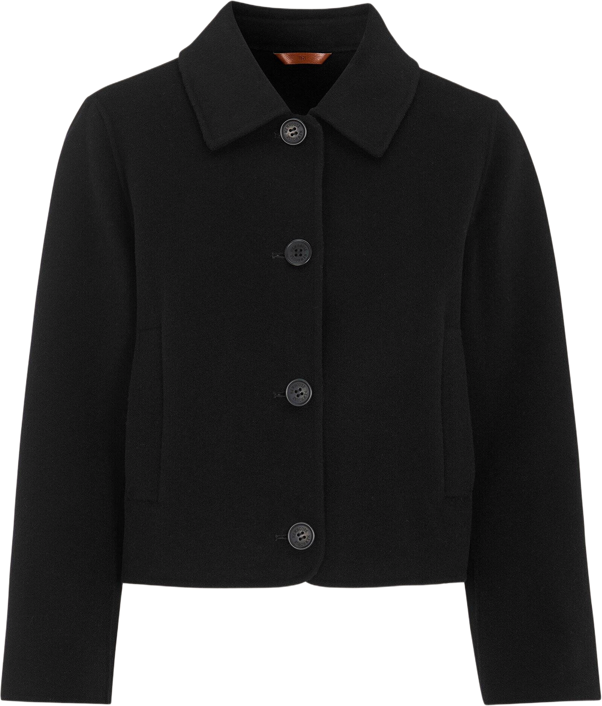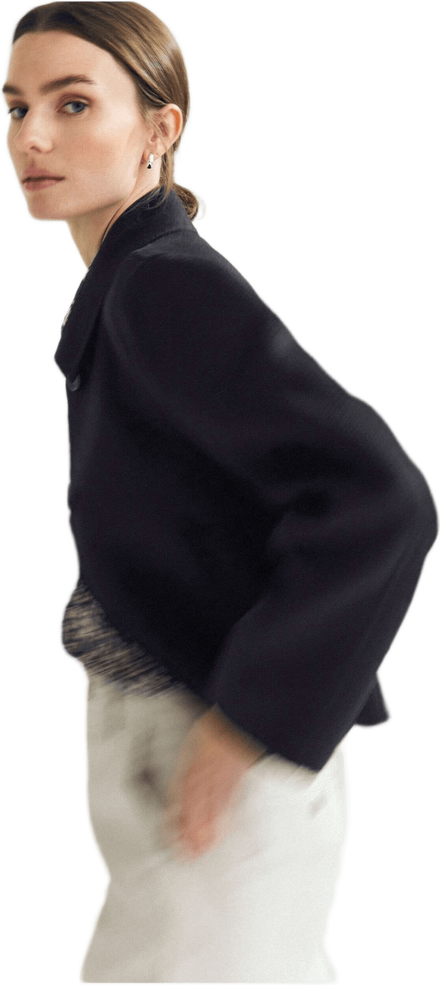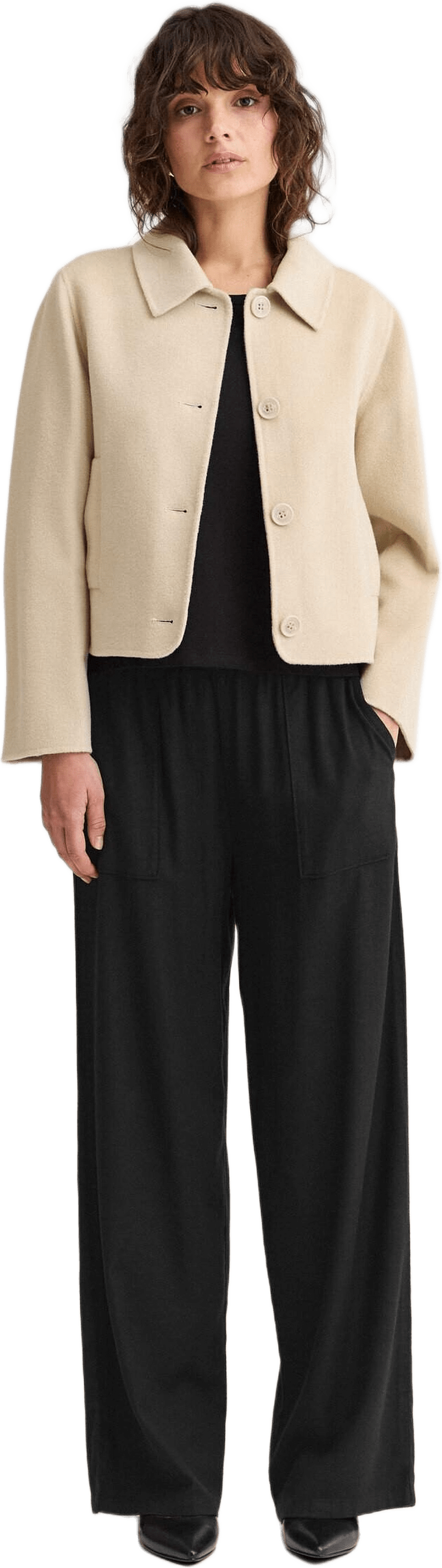 Kort jacka i dubbelvävt ullmaterial, double face, som ger ett lätt och mjukt plagg med elegant struktur. Designad med krage, sidfickor och ton-i-ton-knappar för ett genomtänkt och tidlöst uttryck.