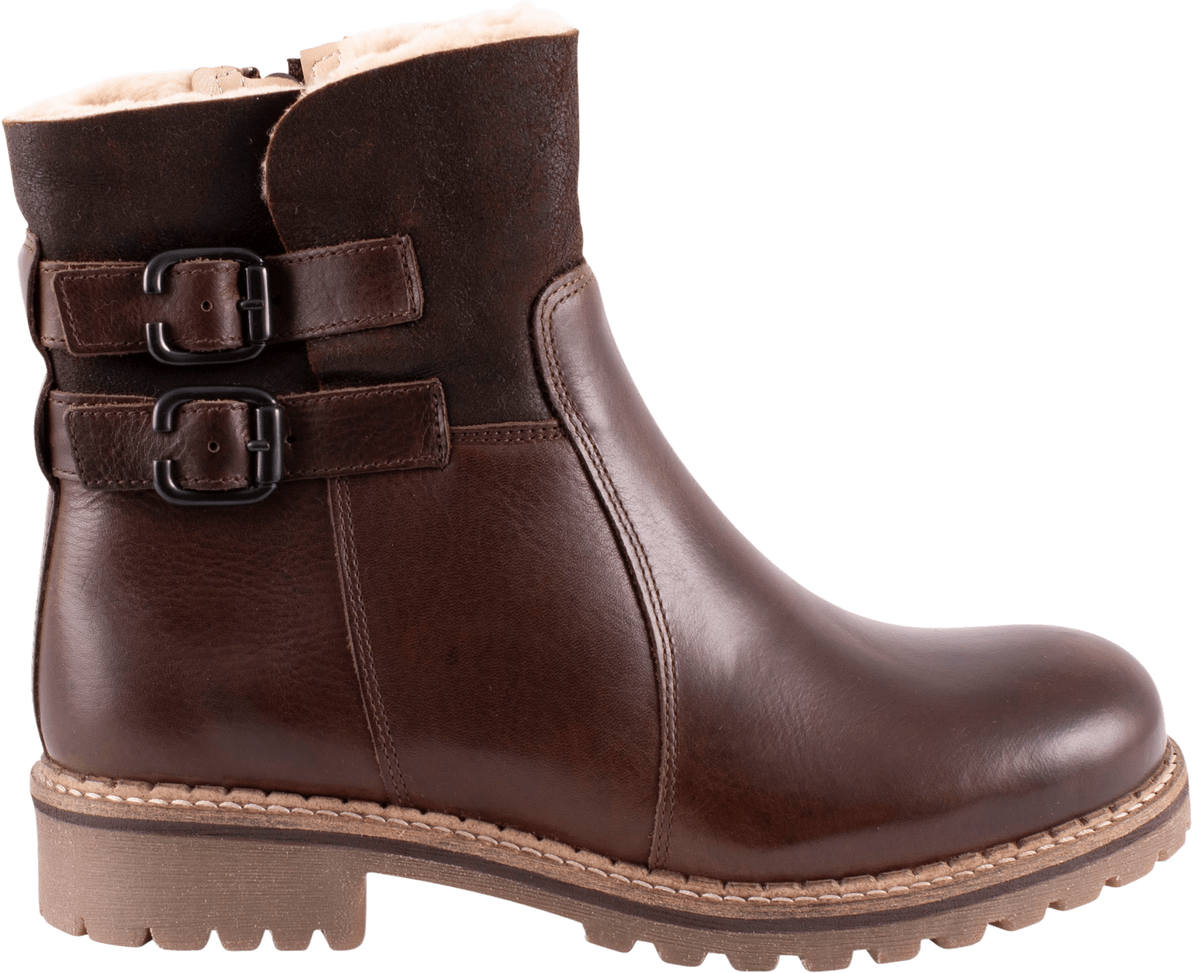 Shepherd Smilla är ett par kraftfulla men feminina boots i läder, fodrade med mjukt fårskinn som värmer på djupet. Den ankelhöga modellen har ett vikbart skaft med dubbla spännen, en detalj som ger karaktär och möjliggör variation i stilen.