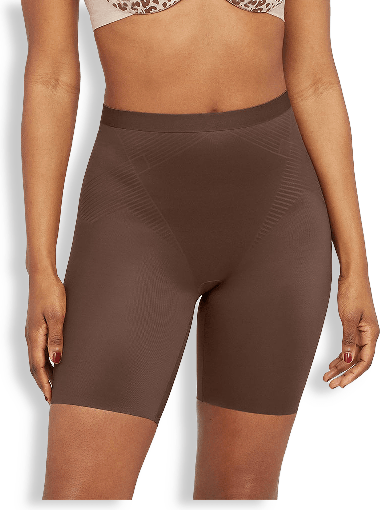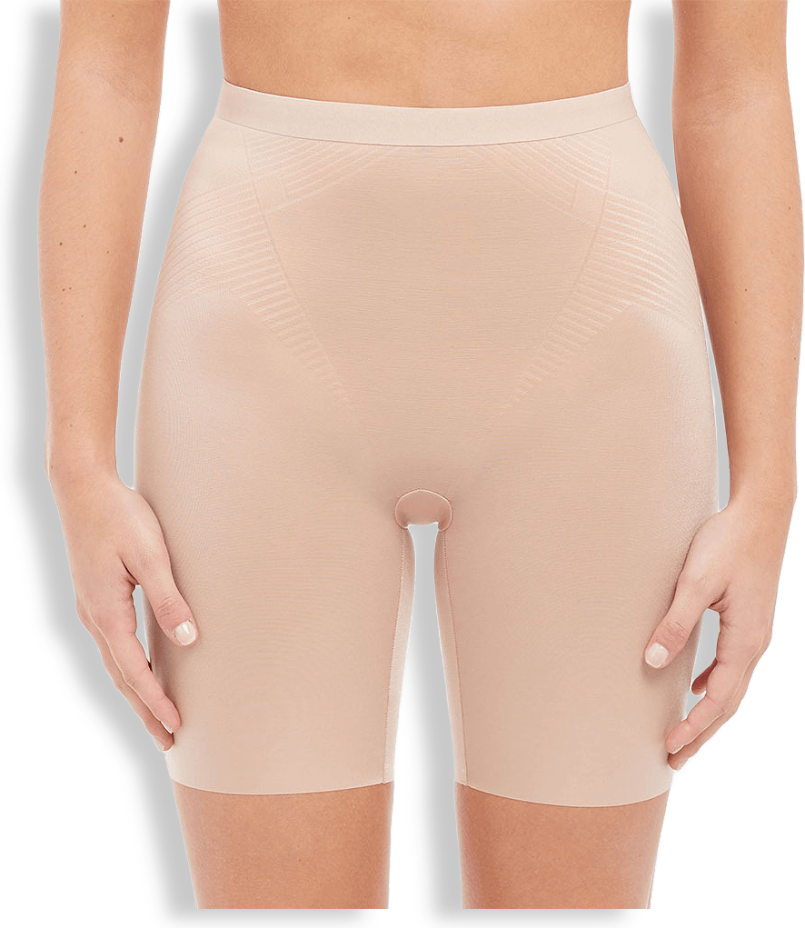 Feels like nothing, does everything.® Experience lightweight and powerful compression with our SPANXshape™ Invisible Mid-Thigh Short. Featuring advanced single-layer Printed Power® shaping technology made with LYCRA® FitSense™ Print Technology, this high-waisted brief includes targeted tummy control panels that wrap around for 360-degree shaping. Designed with ultra-thin, breathable fabric that is moisture-wicking and quick-drying, a cotton gusset for comfort, a no-slip, no-squeeze silicone waistband that prevents rolling, and no-dig flexible leg openings, this shapewear prevents thigh-chafing and goes undetected under any outfit.