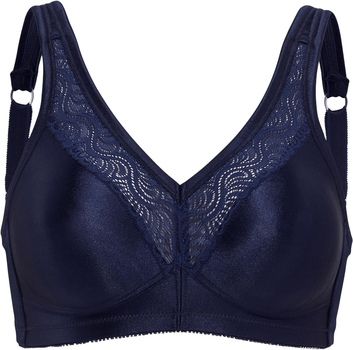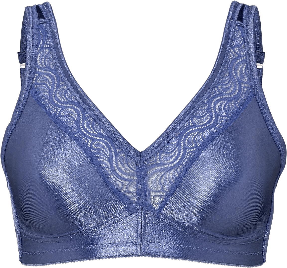 Stars mjuk-bh från Swegmark. En stabil mjuk-bh som ger ett fantastiskt lyft även i storta storlekar. Den har formpressade kupor för skön komfort och en mjuk siluett, och vacker spets framtill på kupan. Axelbanden är breda och vadderade. Det mjuka materialet med en blank yta gör att kläderna får ett fint fall. Om du inte köpt Stars förut, välj en kupa mindre än normalt då den är rymlig i kuporna.