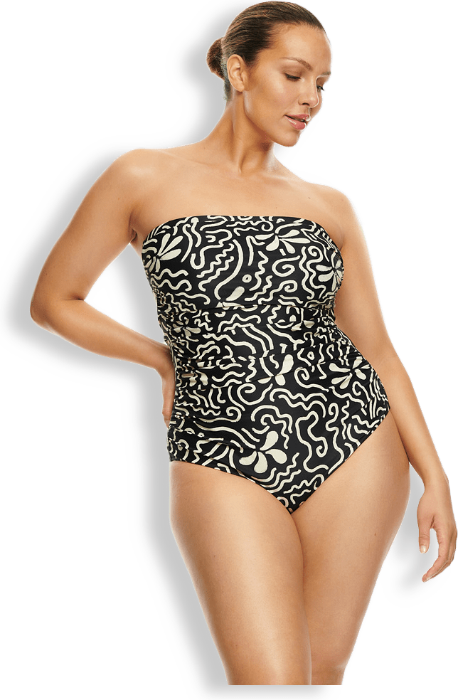 "En tidlös baddräkt som passar alla kroppar och tillfällen. Med ett inbyggt stöd för bysten samt ett stödnät på framsidan som håller magen på plats känner du dig bekväm och feminin. Kan bäras med eller utan axelband.Tillverkad i exklusiv ECONYL från Italien. 78% återvunnen polyamid, 22 % elastan.snabbtorkande, klorresistent och med UPF50."