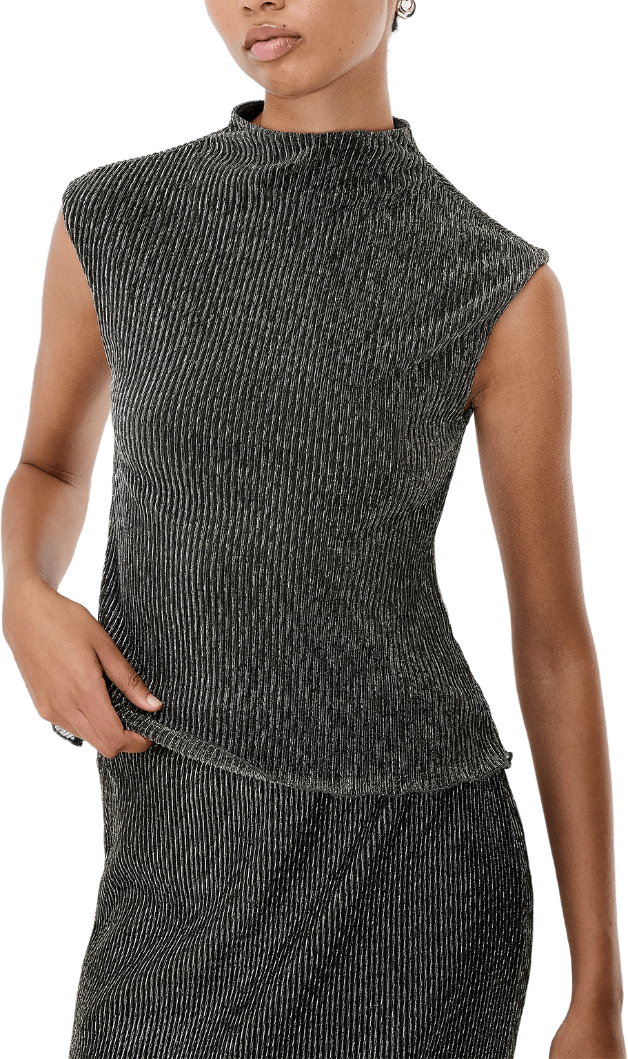 Tamy Lurex Plisse Slvlss Top
