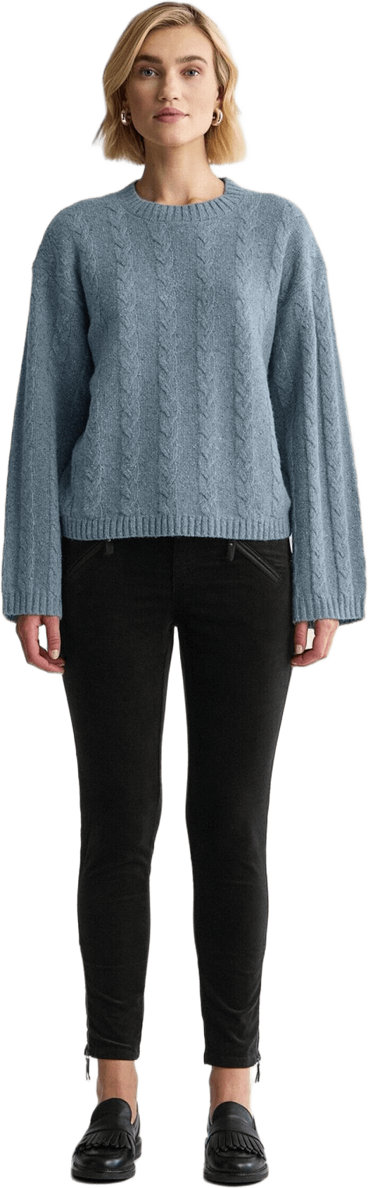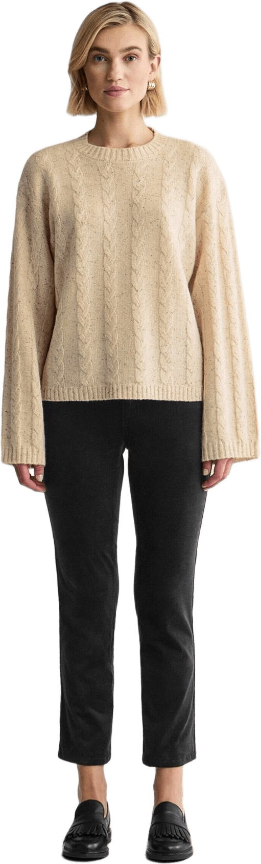 Mjuk och stilfull tröja med avslappnad passform och breda ärmar. Stickad i ett tweedgarn med vacker struktur och klassiskt flätmönster.