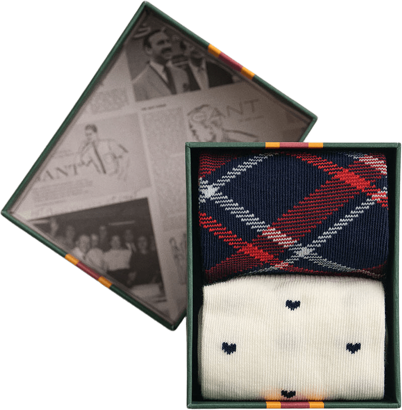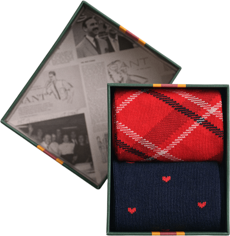 Tvåpack rutiga och hjärtmönstrade strumpor i presentförpackning