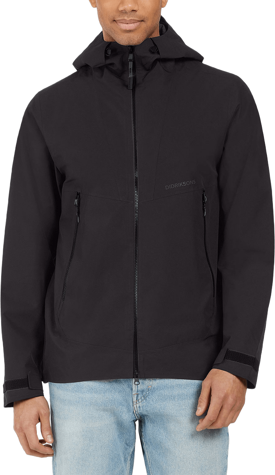 Jackan har en fast huva med formad skärm som kan justeras i två riktningar för optimalt skydd. Ärmsluten kan justeras med kardborre för en perfekt passform, och nederkanten kan justeras med dragsko. Praktiska fickor inkluderar en innerficka med dragkedja och två ytterfickor med dragkedja för säker förvaring. Reflexdetaljer, inklusive en logotyp och dragkedjedetaljer, ökar synligheten i mörker.