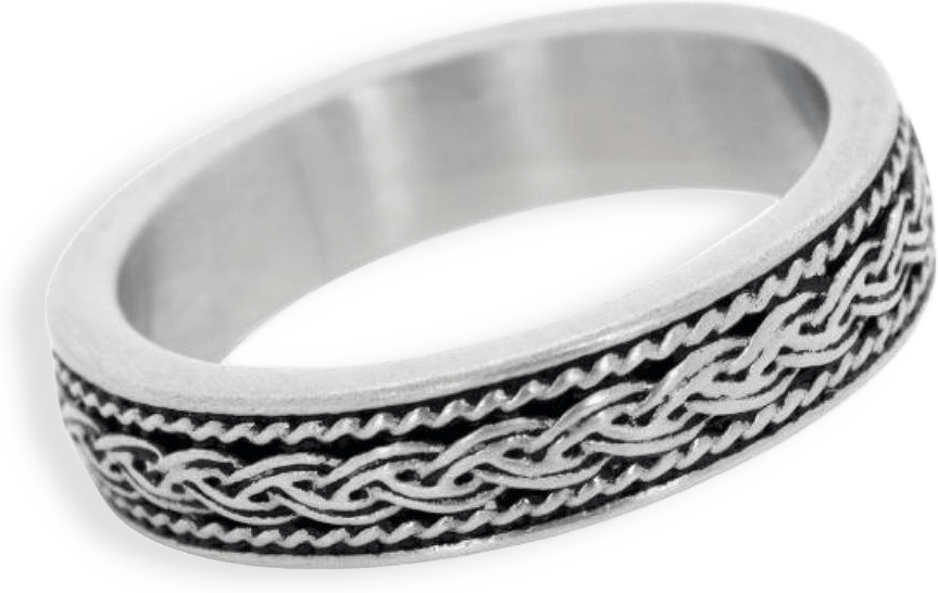 Stålring med stilrent, flätat mönster i modern tappning. En ring som aldrig går ur tiden!