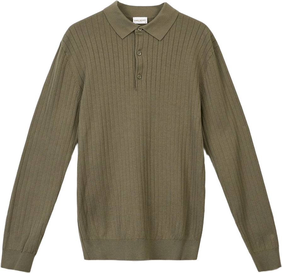 Höj din stil med vår ribbstickade långärmade piké, en perfekt blandning av komfort och stil lämpad för alla årstider.