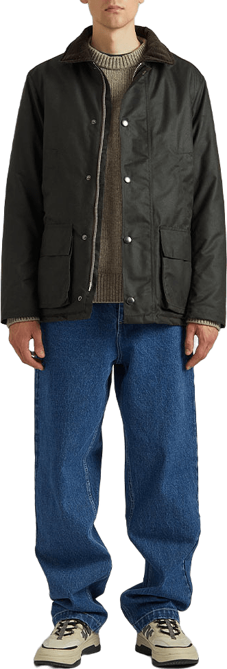 Tvåvägsblixtlås fram med skyddande knäppkant med tryckknappar