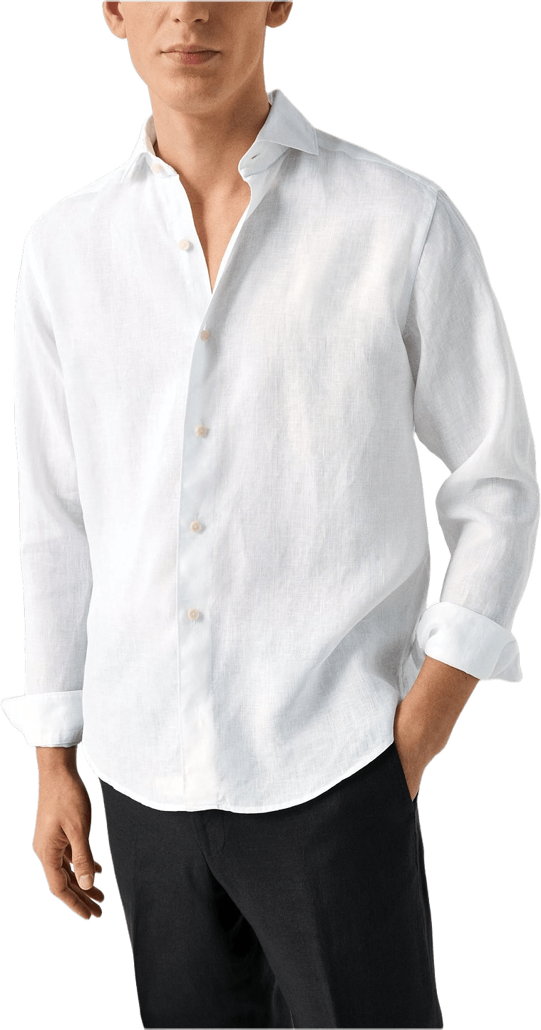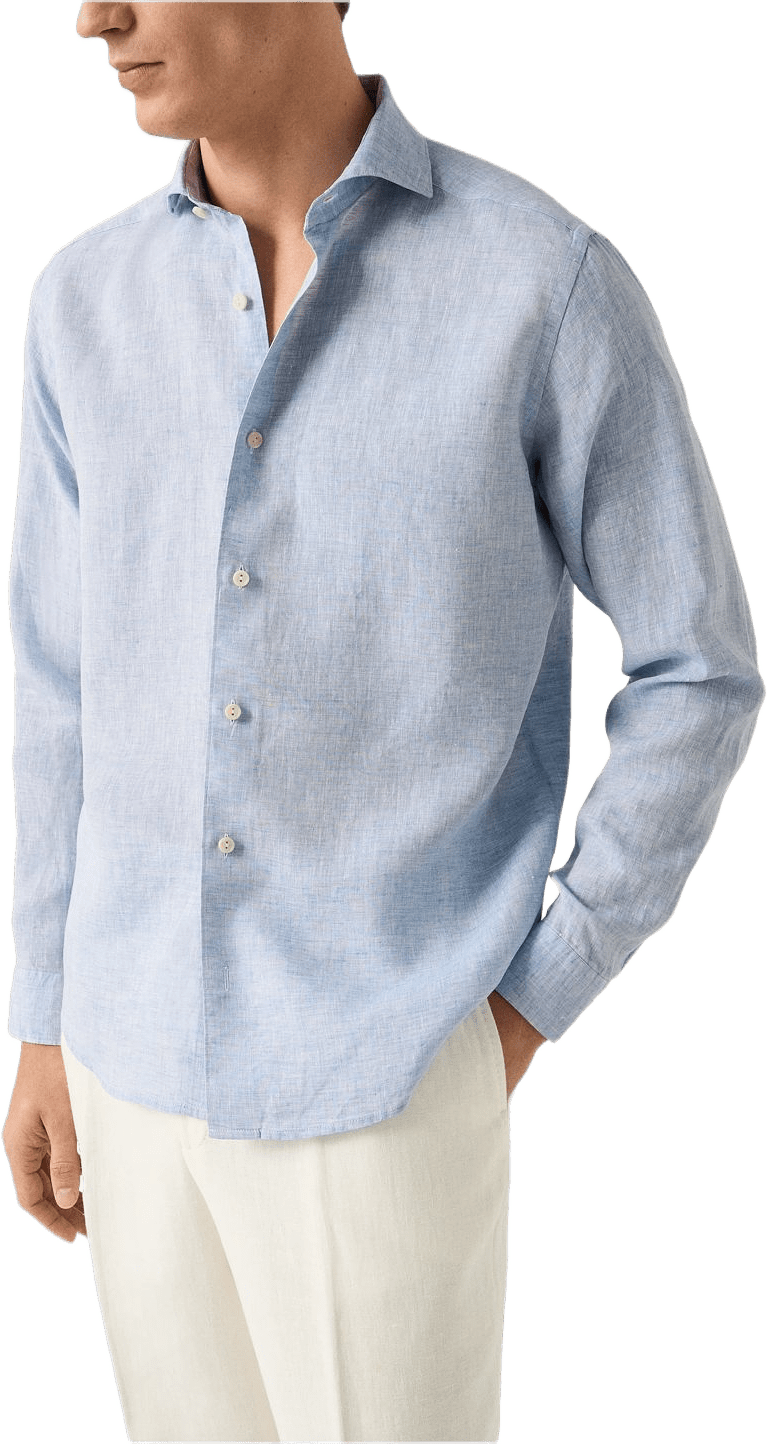 Skjortan är tillverkad i 100 % linne av högsta kvalitet, vävt hos det ansedda italienska väveriet Albini. Materialet har naturligt fuktavledande och temperaturreglerande egenskaper, vilket gör skjortan särskilt behaglig under varma dagar. Den är plaggtvättad för extra mjukhet och bjuder på skön komfort och en luftig, andningsbar känsla.