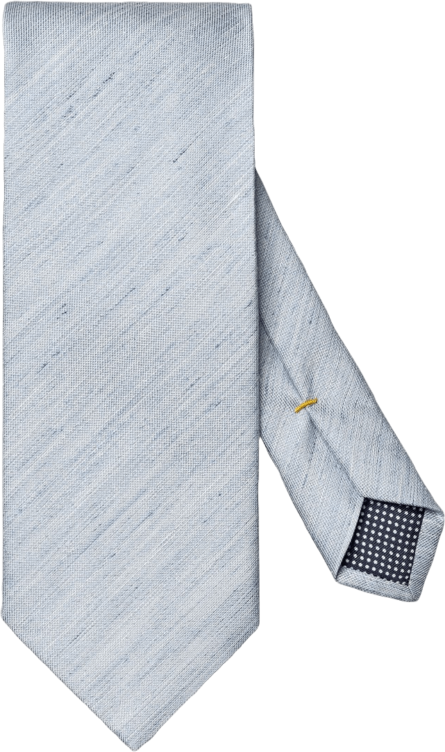 Slipsen är tillverkad i en linne- och sidenblandning med en elegant, oregelbunden struktur. Tyget vävs hos det anrika väveriet Fermo Fossati i Como, Italien, och består av 51 % linne och 49 % siden, vilket ger en lyxig men luftig känsla och ett distinkt uttryck i både formella och business-sammanhang.