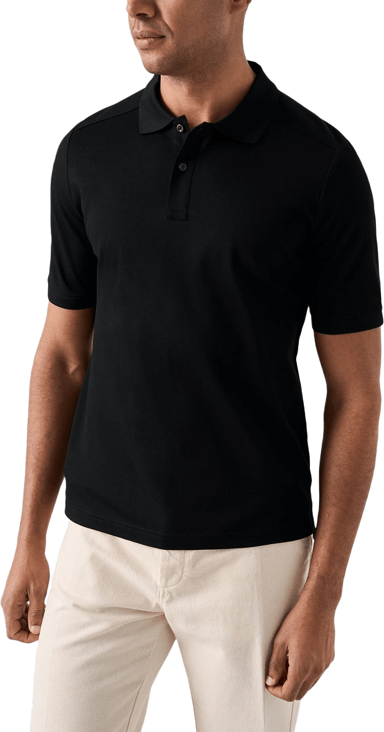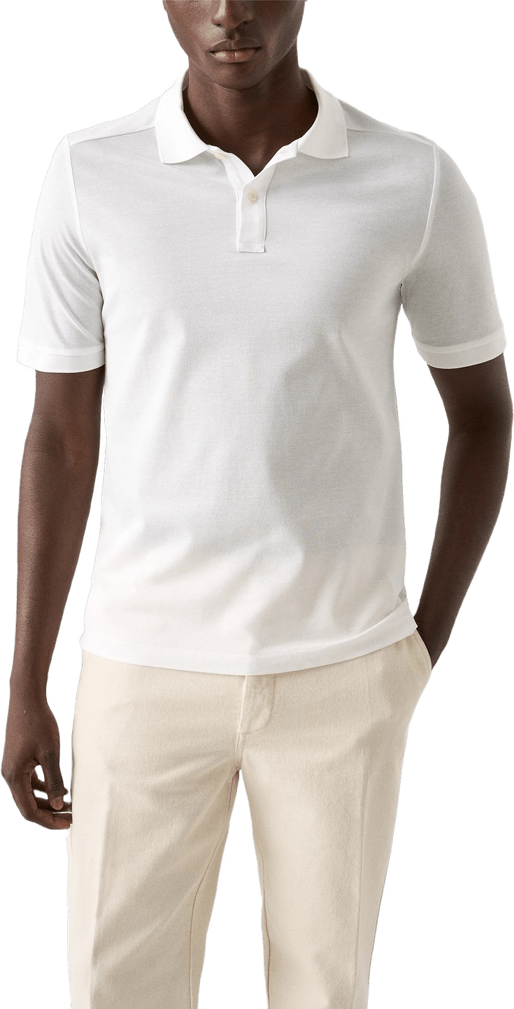 En vacker pikétröja gjord av enfärgad piquétrikå, stickad av Filo di Scozia-garn i Lombardiet, Italien. Skapad för att ge extra mjukhet och flexibilitet, har denna piké en stickad krage och ärmslut, kombinerat med en klassisk knappslå för en stilfull och elegant look. Knapparna är noggrant utvalda för att matcha tygets nyans och ge en sofistikerad känsla.