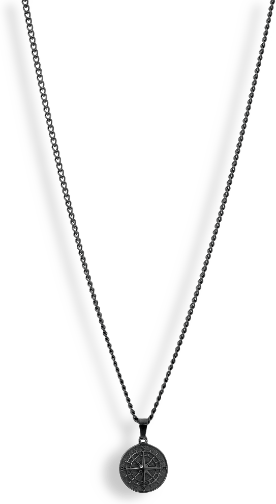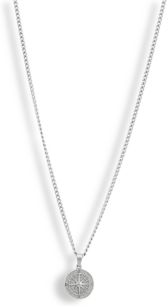 En tunn kedja i rostfritt stål med ett hänge utformat som en kompass.