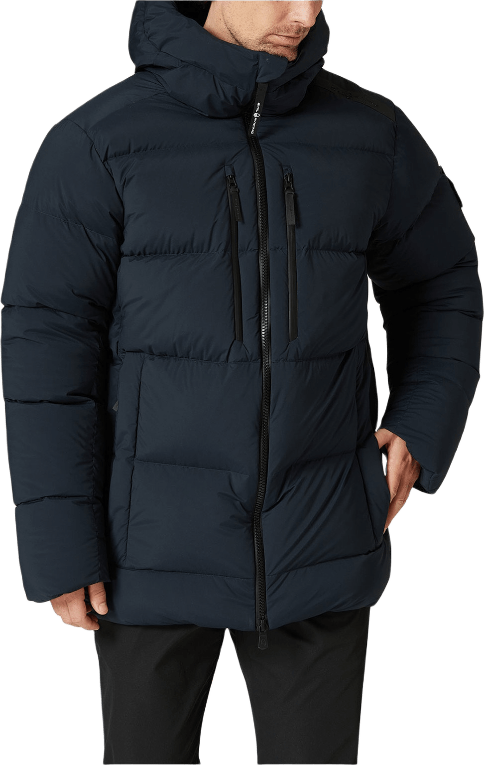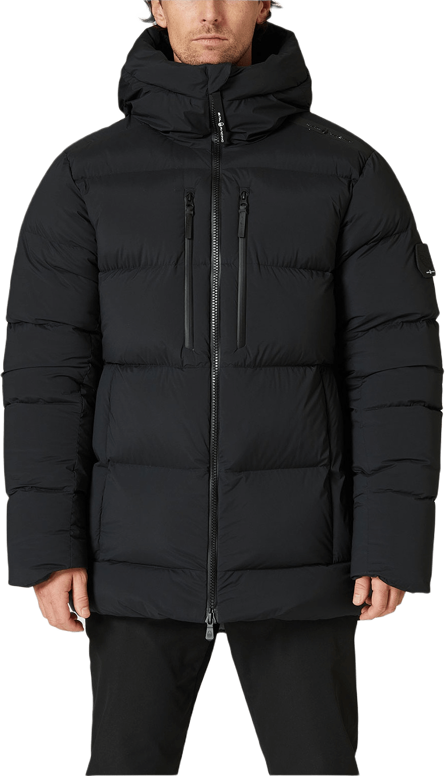 The Hurricane Down Parka is a windproof and water repellent down jacket made in nylon and polyurethane. The jacket has a unique double layer down construction with overlapping down channels to minimize heat loss. The jacket has high breathability of 10,000 MVP and an internal lining in graphene-nylon to optimize temperature regulation. To further add to the jacket's functionality, it is equipped with a PFC-free DWR treatment with water-repellent properties that prevent the fabric from getting wet. The jacket is filled with 90/10 Blue Sign and RDS certified down and feathers for warmth and comfort in cold winter conditions. Fill power 700. The jacket has a two-way YKK Aquaguard® zipper that helps protect against water ingress and a brushed tricot lining at the chin. The hood can be adjusted with a drawstring at the back for a custom fit and has a down-filled channel around the opening. The sleeve ends are extended over the back of the hand and the inside is equipped with a polar tech-fleece cuff with thumb holders that warms and protects your hands. For added convenience, the jacket is equipped with two waist pockets with hidden zippers and on the inside of the pockets there is an adjustable drawstring for a custom fit around the hip. The jacket also provides two practical chest pockets, and all pockets are lined with microfleece for added comfort. The jacket also has two inner mesh pockets with overlapping closures. With Track My Down, you can see exactly what makes the down inside your garment unique - from verified fill powers that exceed what is claimed to cleanliness and content analysis. Visit www.trackmydown.com