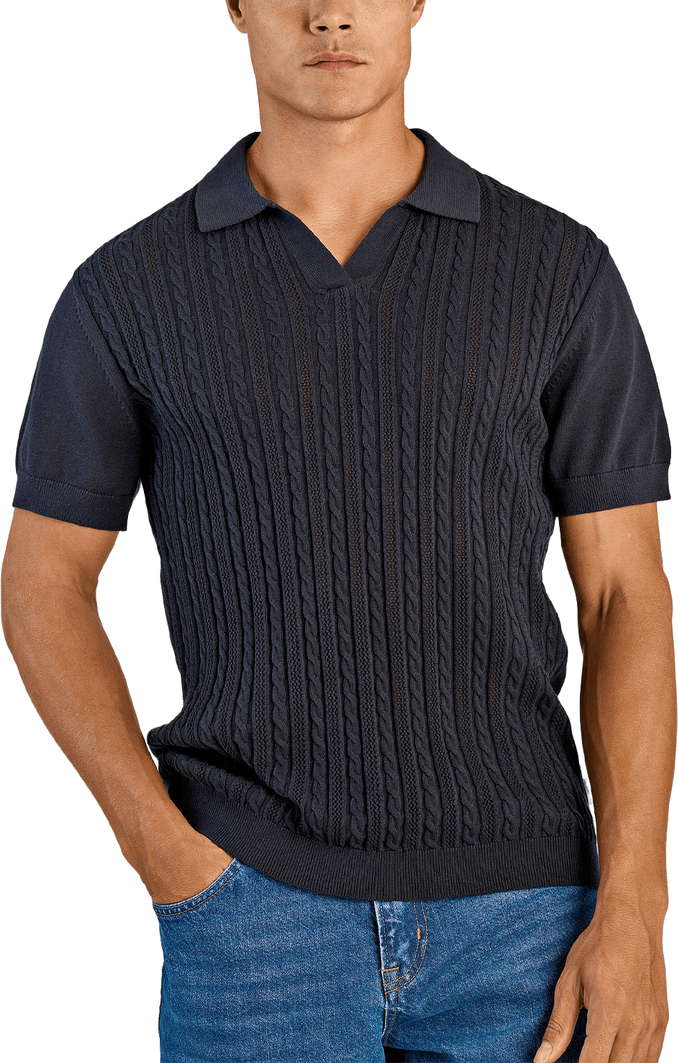 Knitted S/S cable v-neck polo Knit