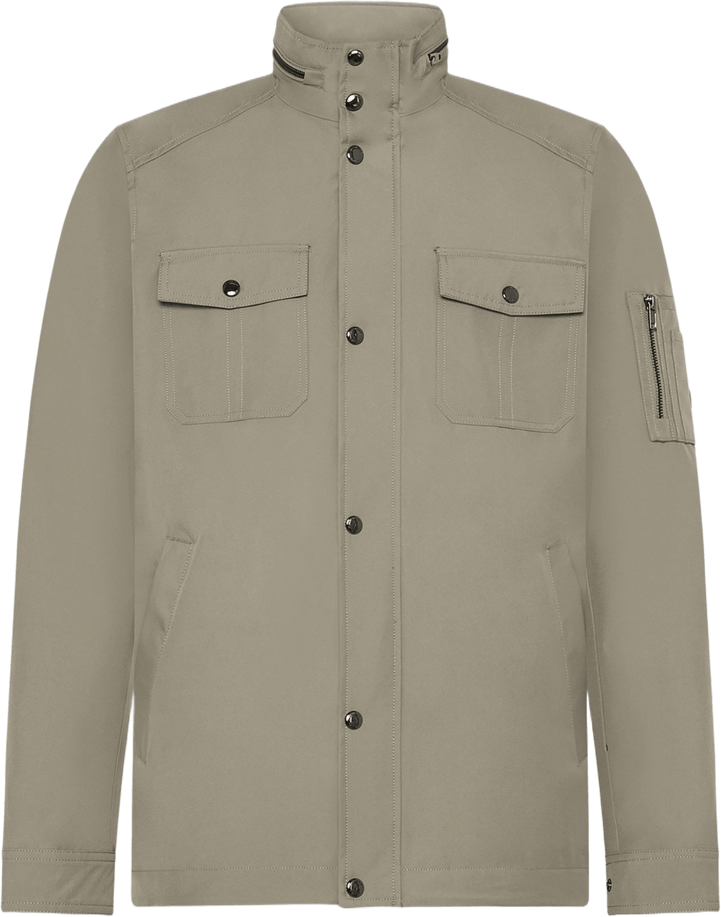 Lex Tech är en mångsidig jacka som kompletterar alla outfits. Designad med en ren, minimalistisk stil och utrustad med ståkrage, två bröstfickor med tryckknappar, midjefickor och en ärmficka med dragkedja. Framtill finns en centrerad dragkedja med knappslå som stängs med tryckknappar. Jackan är lätt och vindtät, och passar perfekt för de växlande årstiderna.