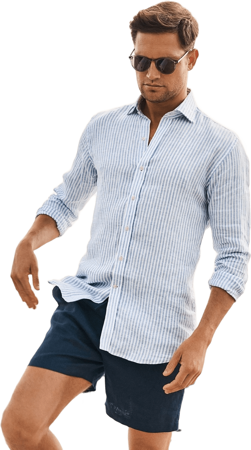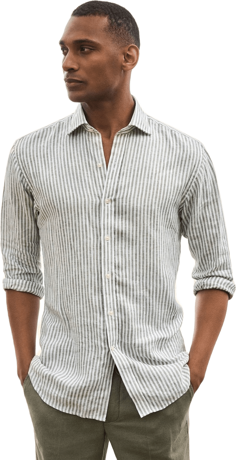 En sofistikerad tolkning av avslappnad elegans, Smalrandig Skjorta Linne är designad för andningsförmåga och stil. Den smala passformen skapar en modern silhuett, medan det lätta linnetyget håller dig sval och bekväm. Med en klassisk skjortkrage, manschetter med knappar och en rundad fåll, passar denna skjorta perfekt både för avslappnade och semi-formella tillfällen.