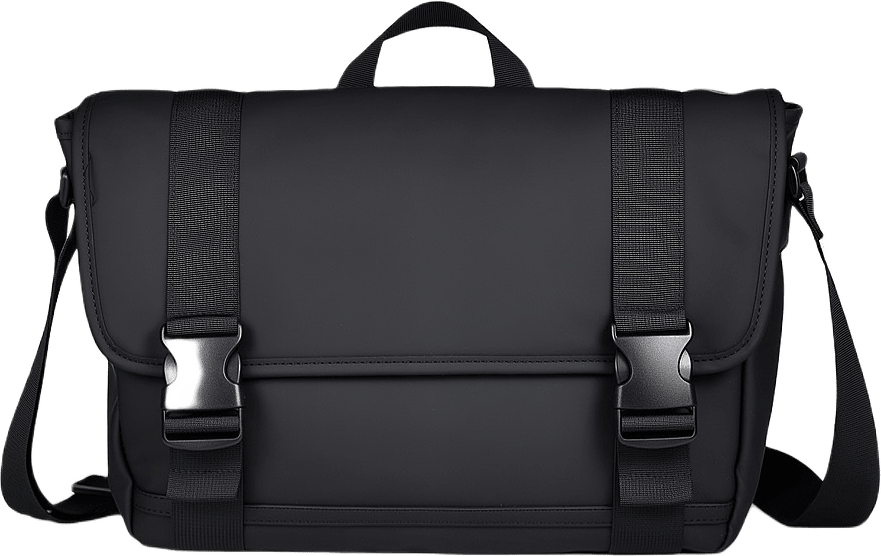 Smidig men rymlig messenger bag i vattenavvisande PU, med topphandtag och justerbar axelrem.