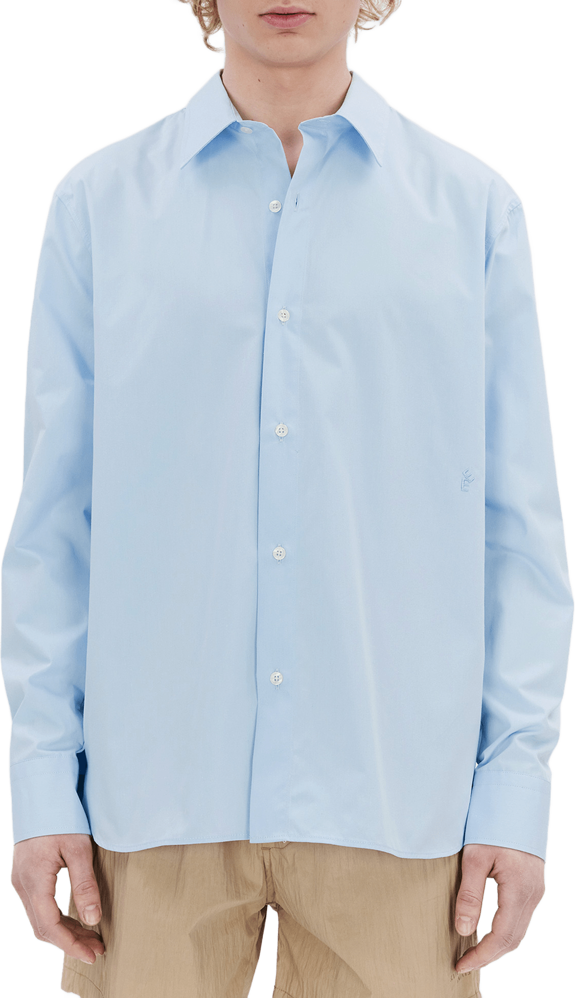 Ossian är en skjorta med avslappnad passform tillverkad i Clear Poplin. Materialet är en blandning av bomull och polyester och har en karakteristisk tät väv som ger plagget en slät och krispig textur. Detaljer inkluderar en rundad nederkant fram, EE-brodyr i ton-i-ton och veck i ryggen. Bär Ossian för en sofistikerad men avslappnad look.