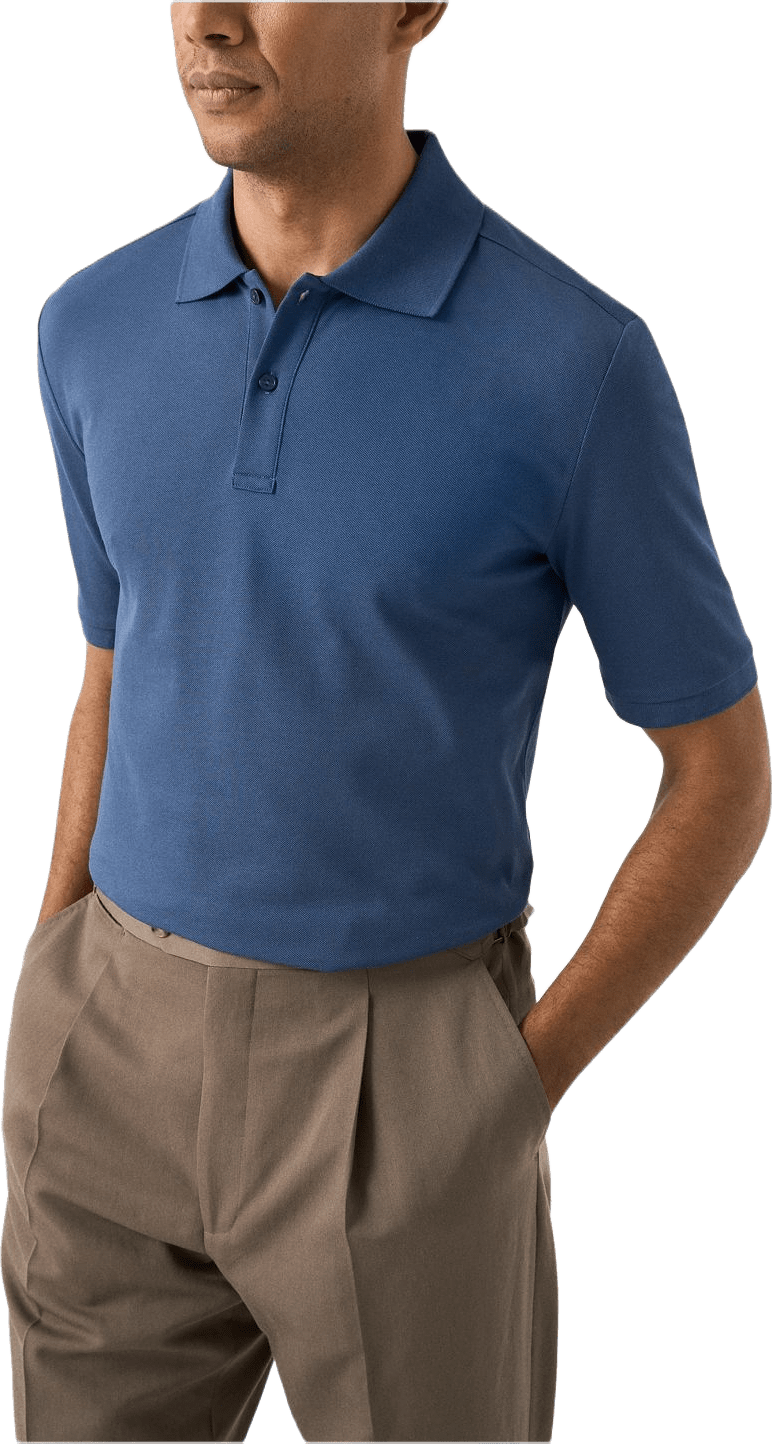 Kortärmad polo i piké av 100 % pimabomull med mycket slät yta och en kvalitet som håller. Med stickad krage, knappslå och tonitonknappar för ett rent, enhetligt uttryck.