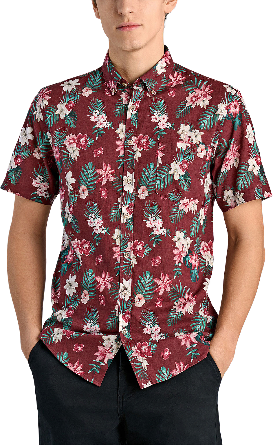 Printed cotton/linen shirt S/S
