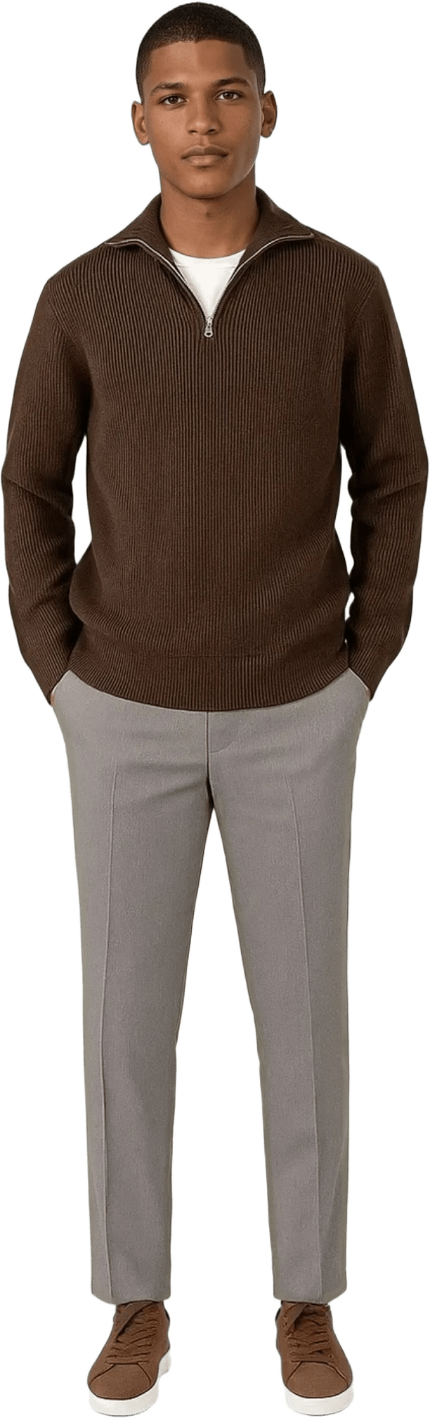 Reuben Knitted Half Zip är en mjuk och bekväm tröja med halv dragkedja och hög krage, Den kombinerar konformitet och stil. Perfekt att bära som lager över en t-shirt eller skjorta, eller för sig själv. Den tidlösa designen gör Reuben till en storfavorit.
