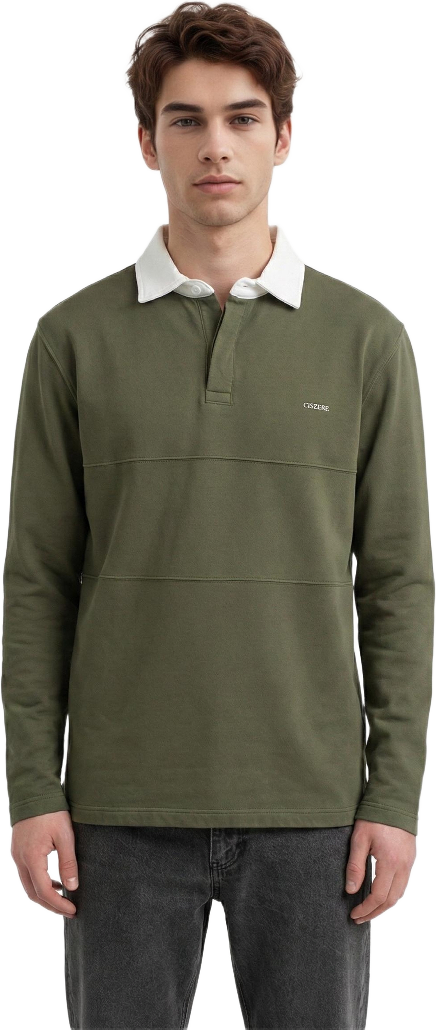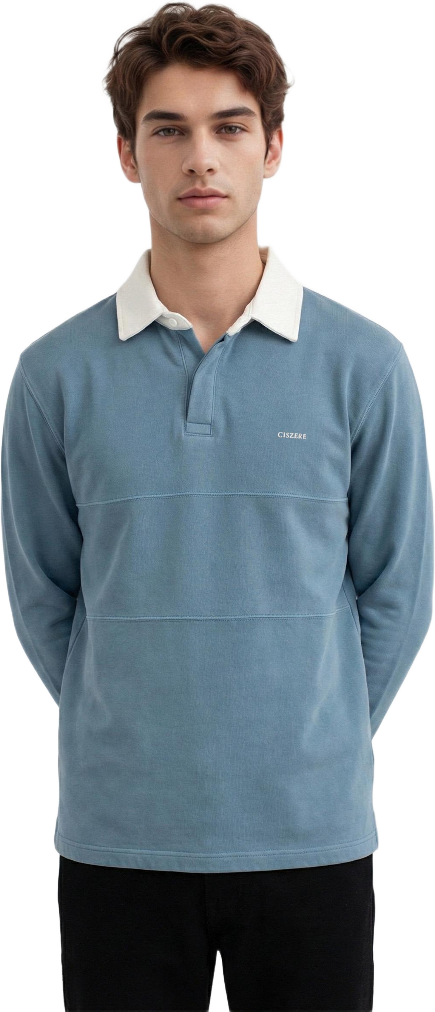 En långärmad pikétröja med kontrasterande krage och kort knappslå. Passformen är regular med ett avslappnat uttryck.