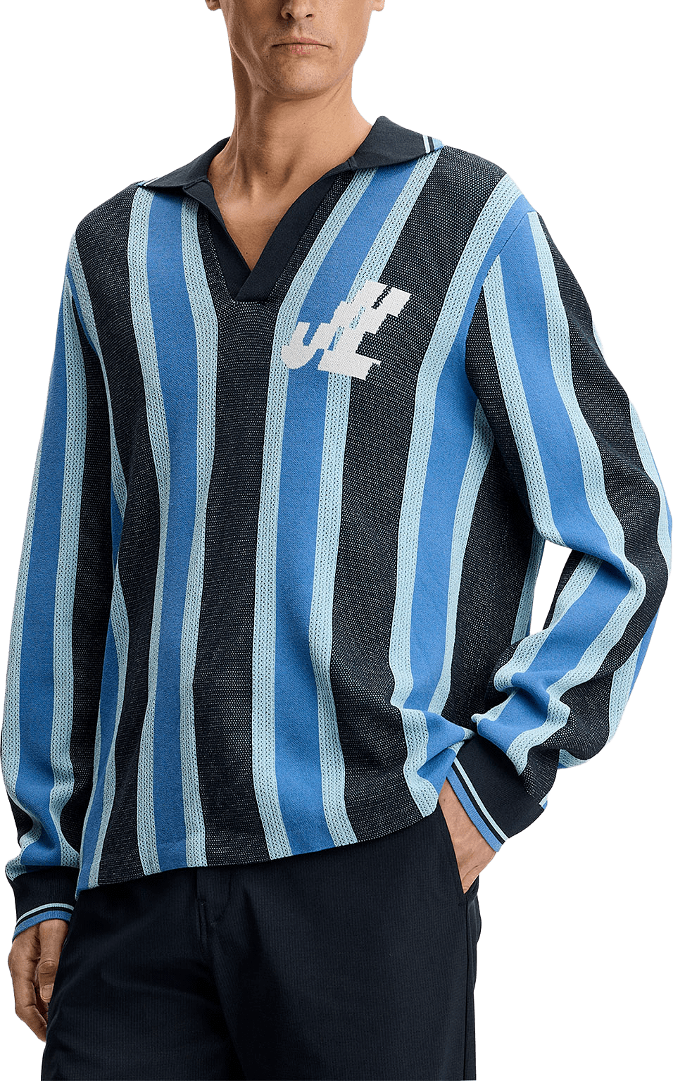 -Relaxed Fit -Knitted long sleeve striped polo sweater -Jacquard stripes -Rib collar, hem and cuffs -Rib sleeve ends -Jacquard logo on chest -Flat knit collar
