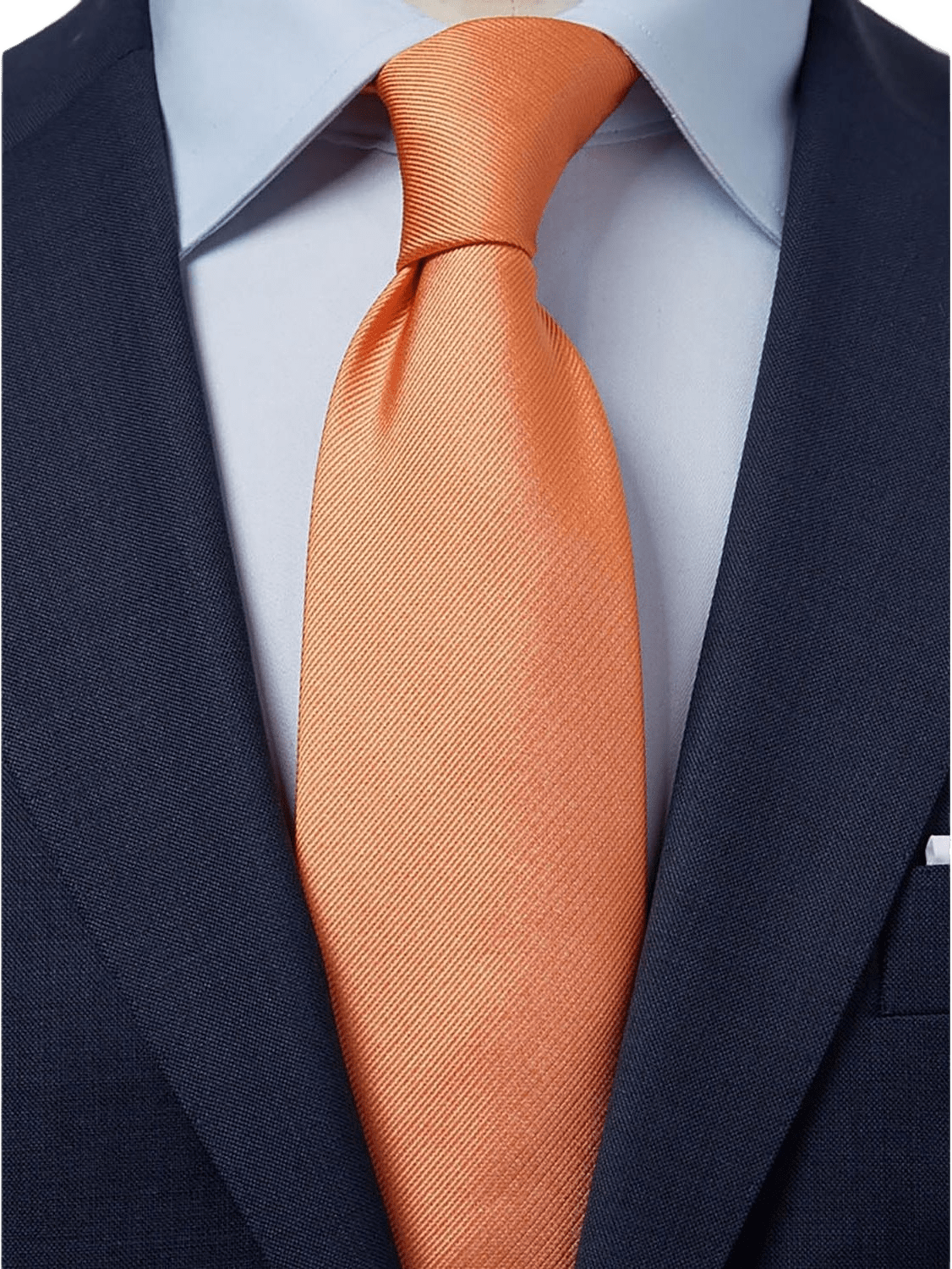 För en säker och stilren look så går det utmärkt att kombinera en ljusorange slips med en mörk kostym i blått eller grått, tillsammans med en enfärgad vit eller ljusblå skjorta och vit näsduk. En enfärgad ljusorange slips är dessutom ett utmärkt val till bröllop och högtider. Ett generellt tips är att matcha din slips med någon annat plagg som dina skor, näsduk eller bälte, utan att det skär sig.