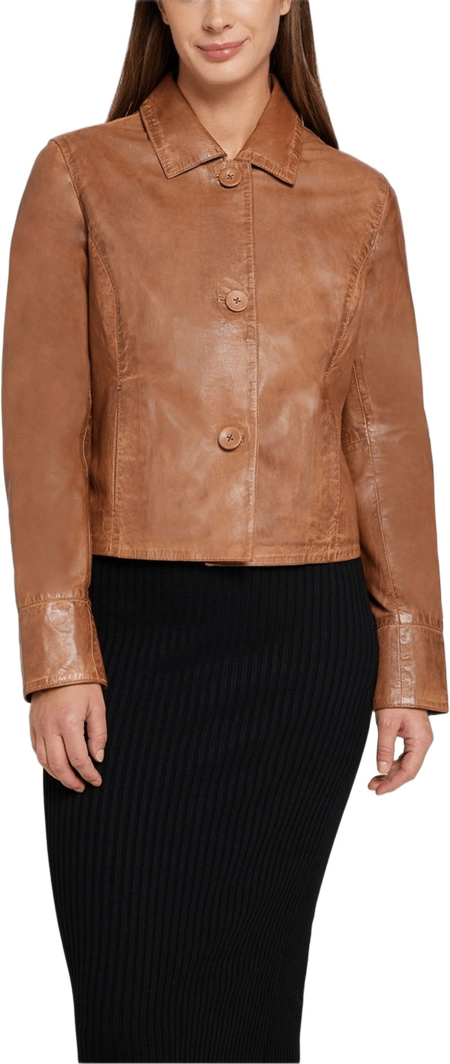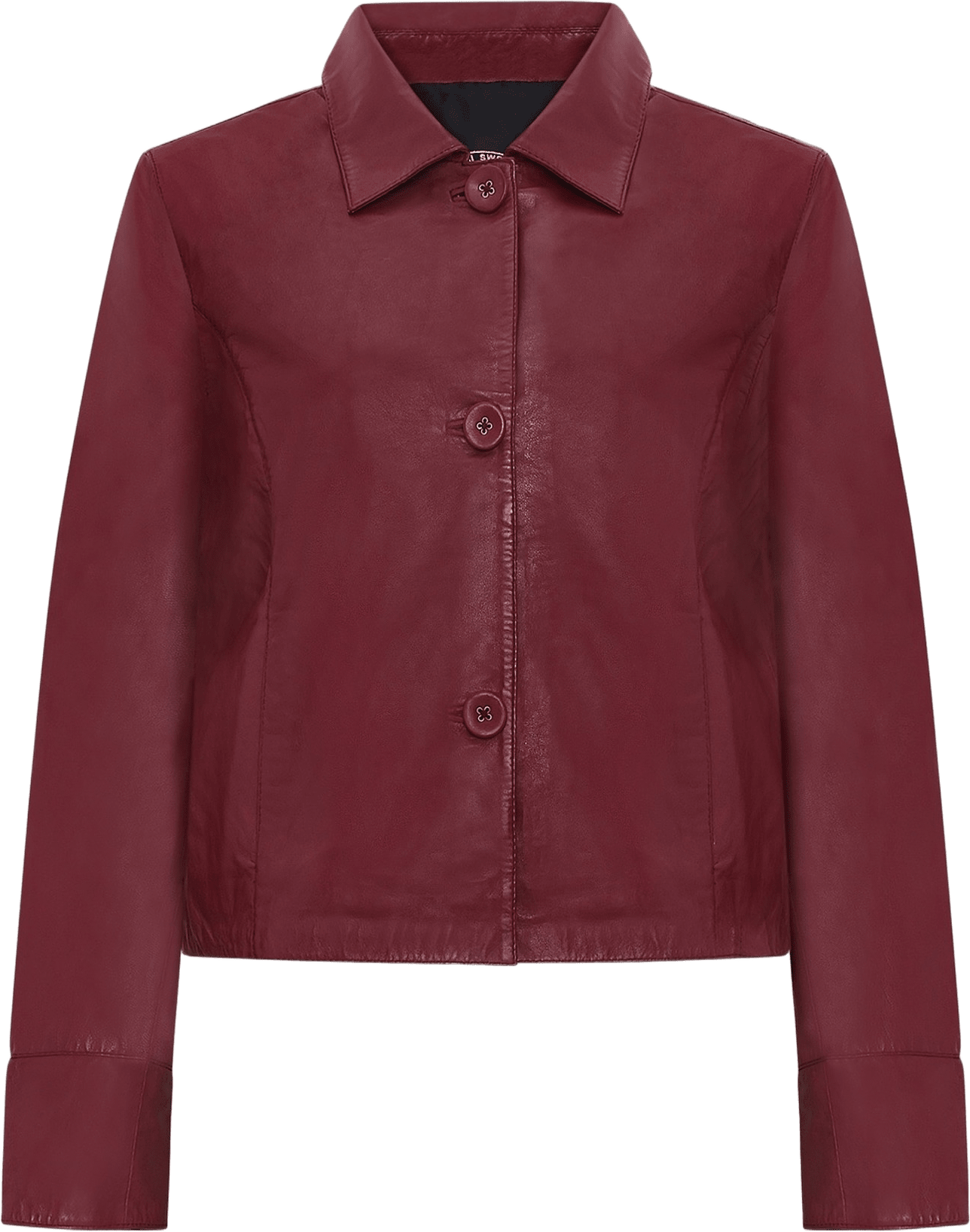 Ledig men elegant skinnjacka. Detaljer som skjortkrage och diskreta midjefickor. Kortare längd och knäppning framtill ger jackan en modern touch. Bär den istället för en kavaj med jeans eller en klänning.